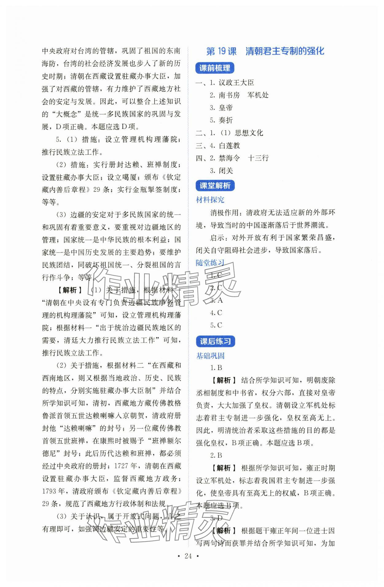 2025年人教金学典同步练习册同步解析与测评七年级历史下册人教版山西专版
