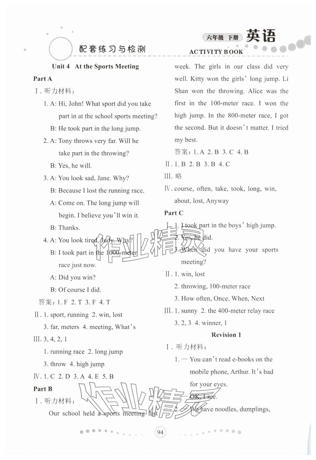注:目前有些书本章节名称可能整理的还不是很完善,但都是按照顺序排列的,请同学们按照顺序仔细查找。练习册 2025年配套练习与检测六年级英语下册陕旅版 答案主要是用来给同学们做完题方便对答案用的,请勿直接抄袭。