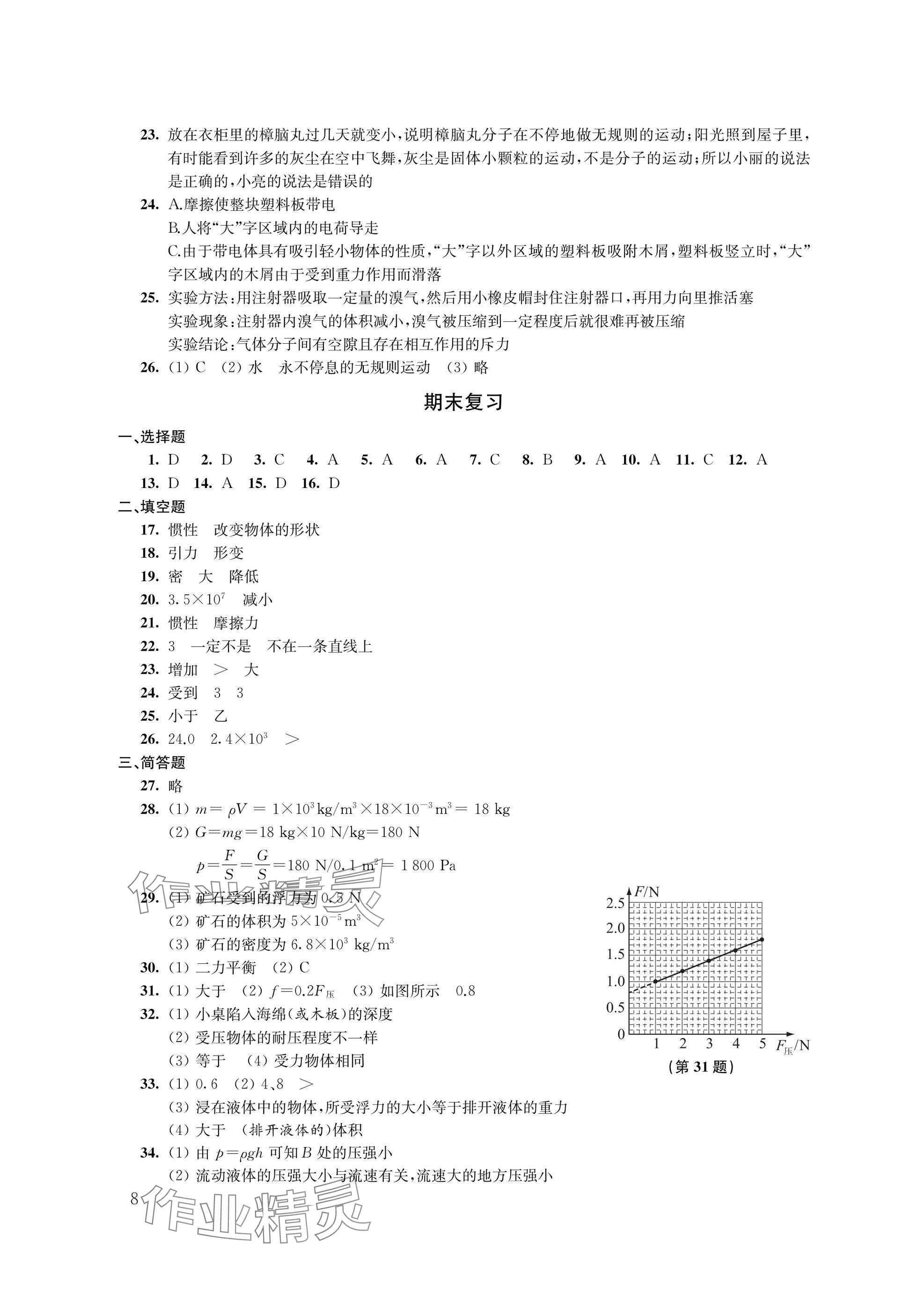 注:目前有些书本章节名称可能整理的还不是很完善,但都是按照顺序排列的,请同学们按照顺序仔细查找。练习册 2025年阳光互动绿色成长空间八年级物理下册提优版 答案主要是用来给同学们做完题方便对答案用的,请勿直接抄袭。