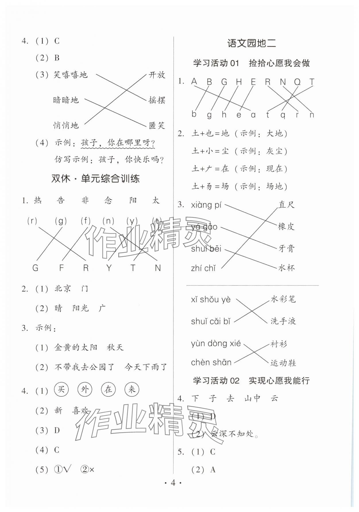 精英家教网> 2025年趣味语文一年级下册人教版 > 第4页 参考答案