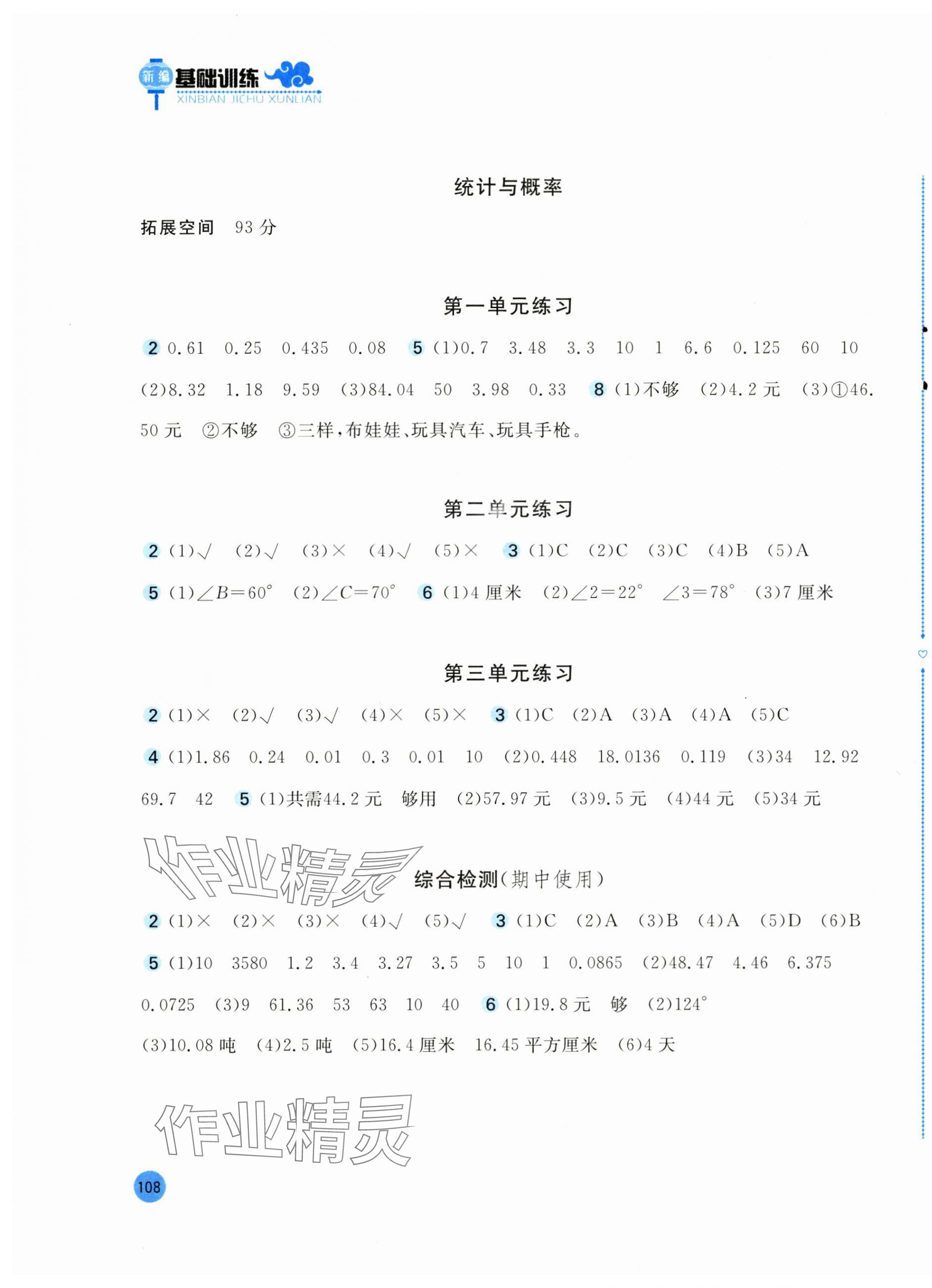 注:目前有些书本章节名称可能整理的还不是很完善,但都是按照顺序排列的,请同学们按照顺序仔细查找。练习册 2025年新编基础训练四年级数学下册北师大版 答案主要是用来给同学们做完题方便对答案用的,请勿直接抄袭。