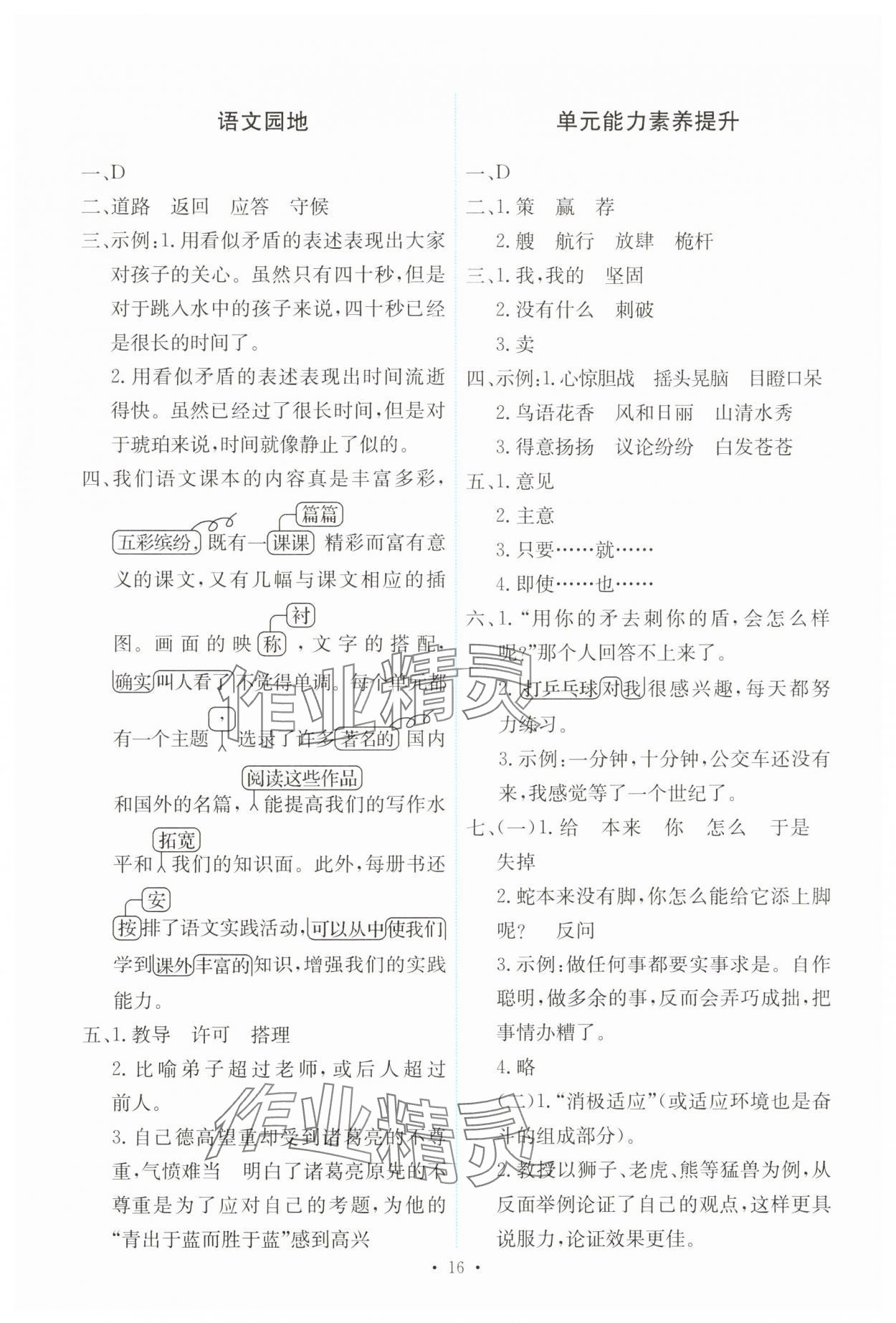 注:目前有些书本章节名称可能整理的还不是很完善,但都是按照顺序排列的,请同学们按照顺序仔细查找。练习册 2025年能力培养与测试五年级语文下册人教版 答案主要是用来给同学们做完题方便对答案用的,请勿直接抄袭。