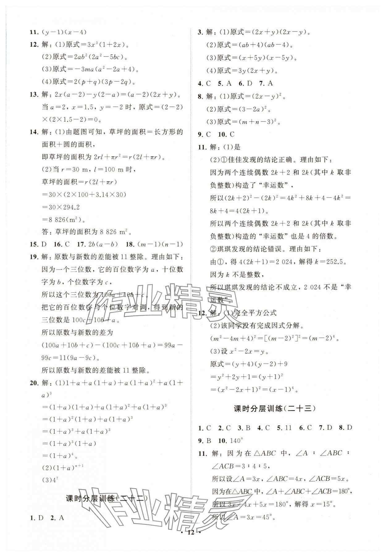 注:目前有些书本章节名称可能整理的还不是很完善,但都是按照顺序排列的,请同学们按照顺序仔细查找。练习册 2025年同步练习册分层卷七年级数学下册青岛版 答案主要是用来给同学们做完题方便对答案用的,请勿直接抄袭。