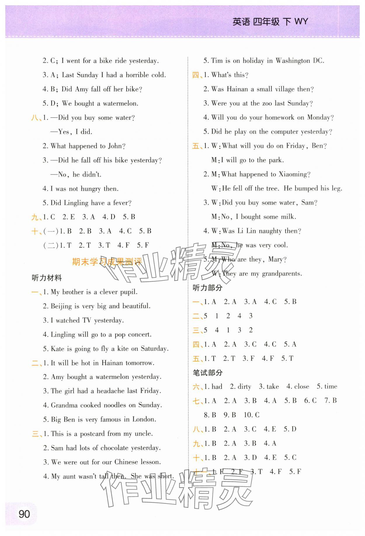 注:目前有些书本章节名称可能整理的还不是很完善,但都是按照顺序排列的,请同学们按照顺序仔细查找。练习册 2025年黄冈同步练一日一练四年级英语下册外研版 答案主要是用来给同学们做完题方便对答案用的,请勿直接抄袭。