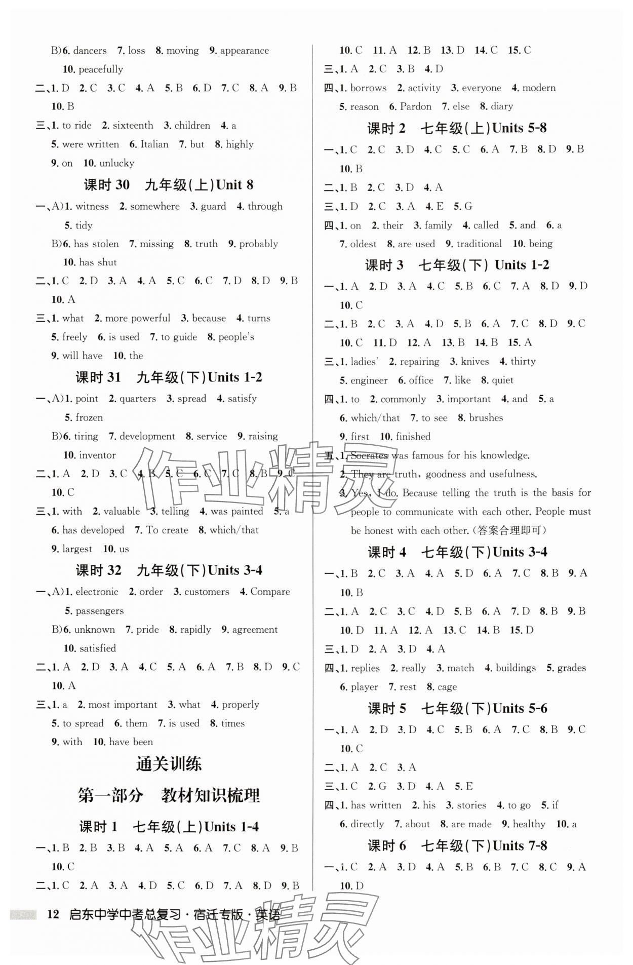 注:目前有些书本章节名称可能整理的还不是很完善,但都是按照顺序排列的,请同学们按照顺序仔细查找。练习册 2025年启东中学中考总复习英语宿迁专版 答案主要是用来给同学们做完题方便对答案用的,请勿直接抄袭。