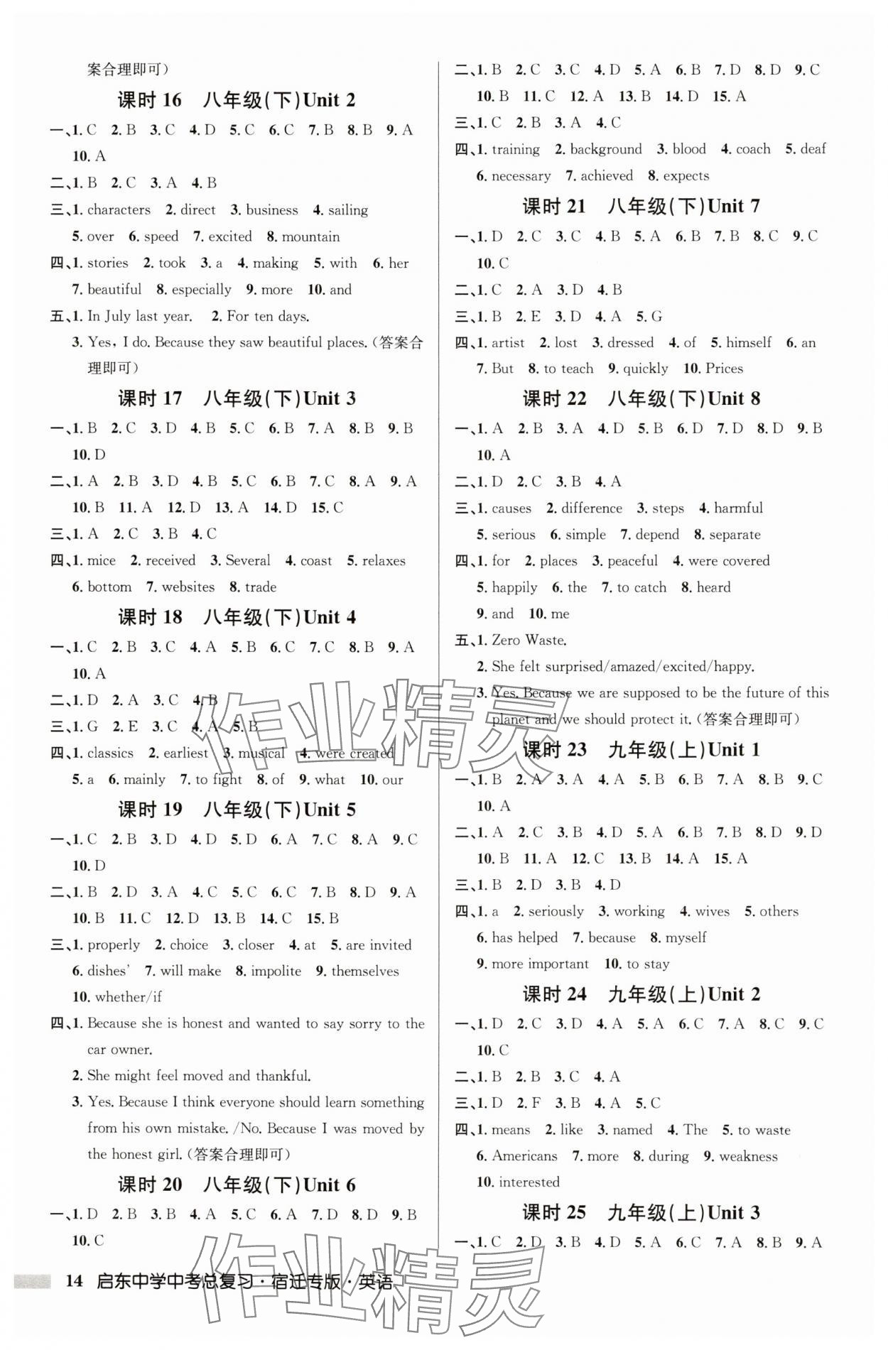 注:目前有些书本章节名称可能整理的还不是很完善,但都是按照顺序排列的,请同学们按照顺序仔细查找。练习册 2025年启东中学中考总复习英语宿迁专版 答案主要是用来给同学们做完题方便对答案用的,请勿直接抄袭。