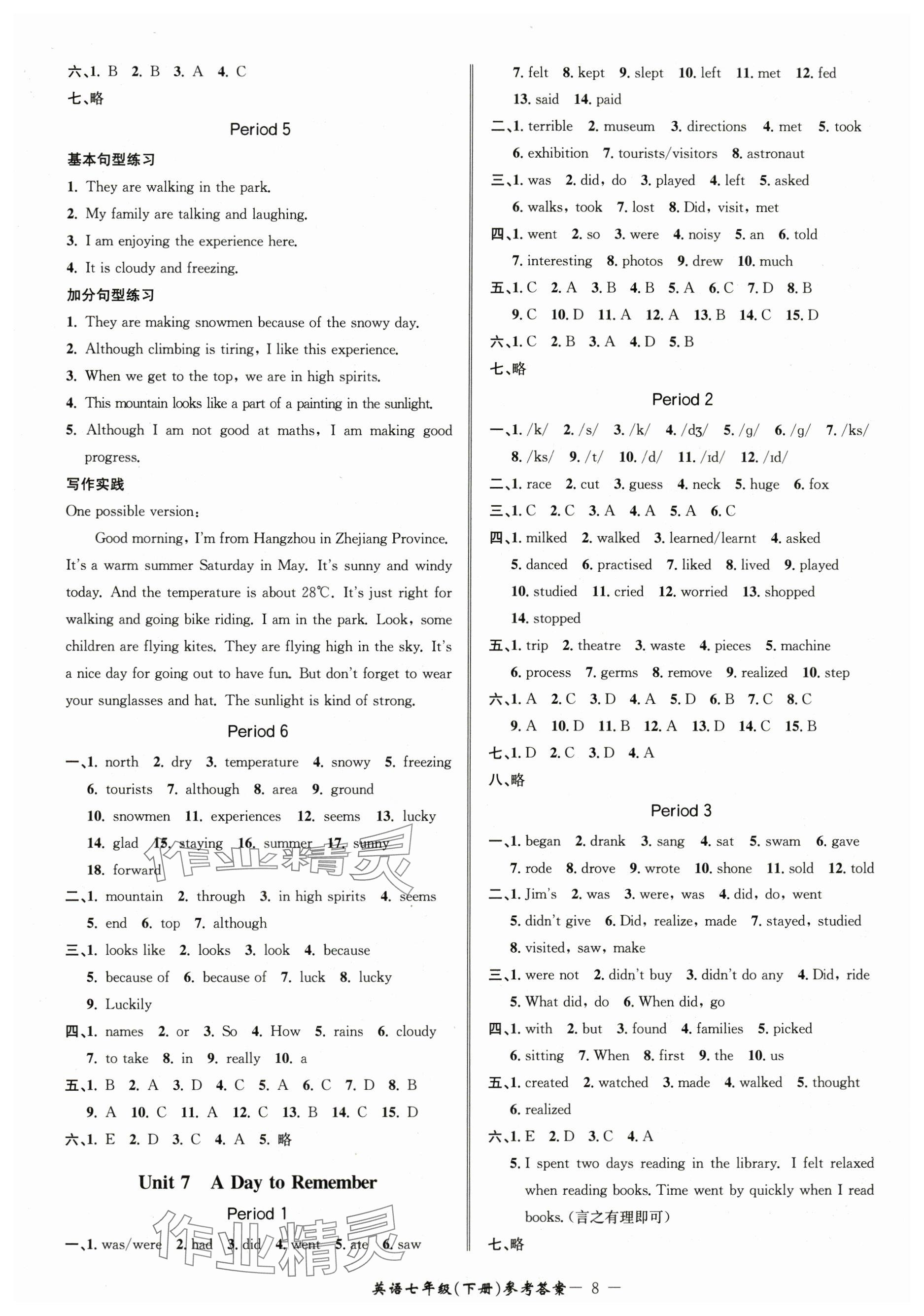 注:目前有些书本章节名称可能整理的还不是很完善,但都是按照顺序排列的,请同学们按照顺序仔细查找。练习册 2025年名师金典BFB初中课时优化七年级英语下册人教版 答案主要是用来给同学们做完题方便对答案用的,请勿直接抄袭。