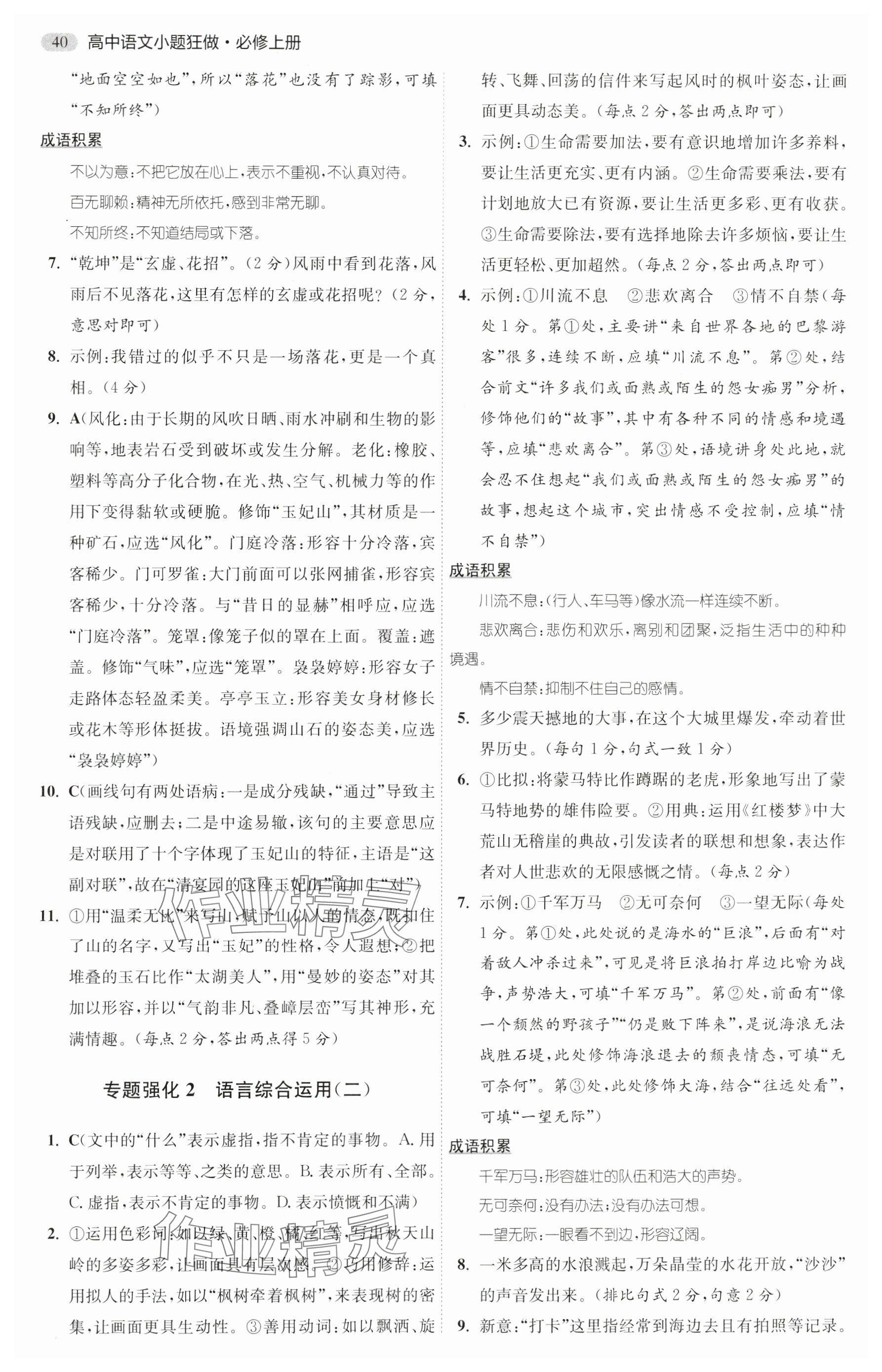 注:目前有些书本章节名称可能整理的还不是很完善,但都是按照顺序排列的,请同学们按照顺序仔细查找。练习册 2025年高中语文小题狂做必修上册人教版 答案主要是用来给同学们做完题方便对答案用的,请勿直接抄袭。