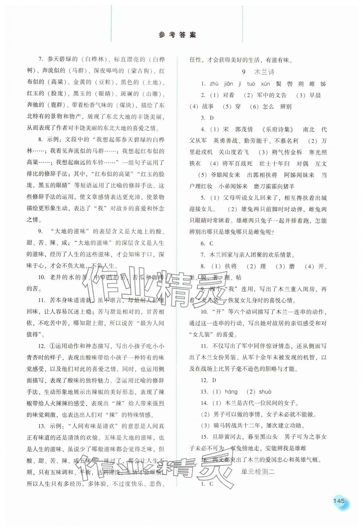 2025年同步训练河北人民出版社七年级语文下册人教版 参考答案第6页