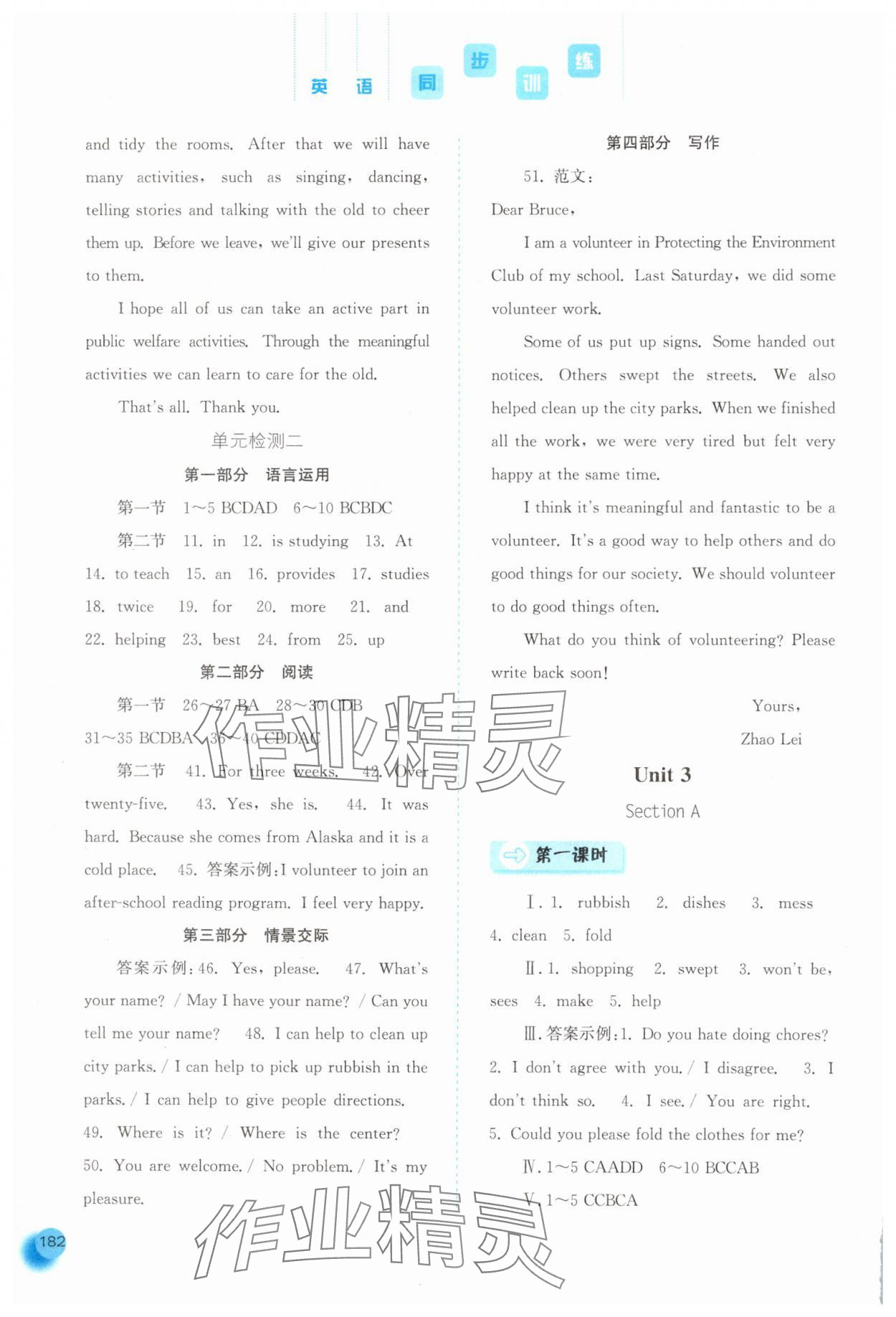 注:目前有些书本章节名称可能整理的还不是很完善,但都是按照顺序排列的,请同学们按照顺序仔细查找。练习册2025年同步训练河北人民出版社八年级英语下册人教版答案主要是用来给同学们做完题方便对答案用的,请勿直接抄袭。