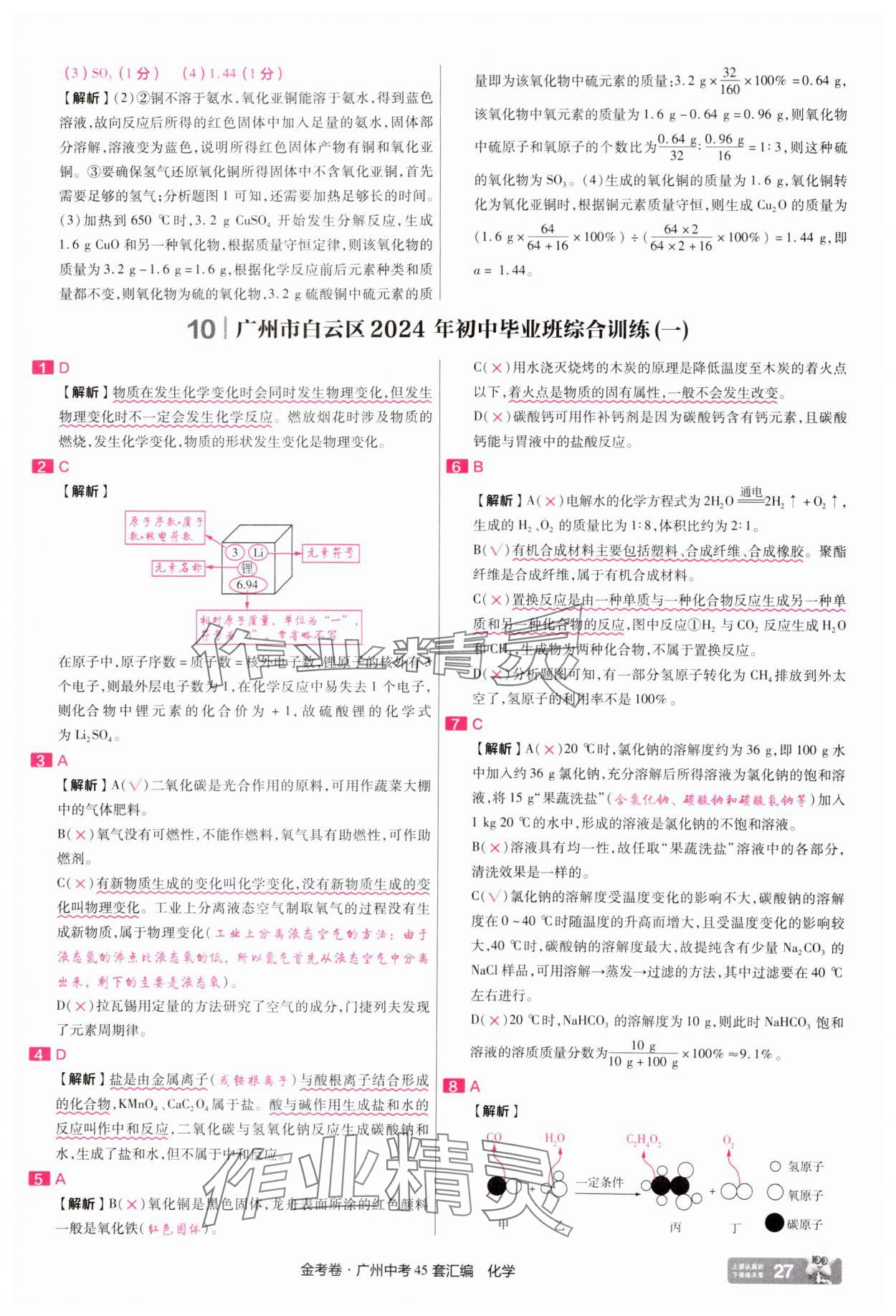 注:目前有些书本章节名称可能整理的还不是很完善,但都是按照顺序排列的,请同学们按照顺序仔细查找。练习册 2025年金考卷中考45套汇编化学广州专版 答案主要是用来给同学们做完题方便对答案用的,请勿直接抄袭。