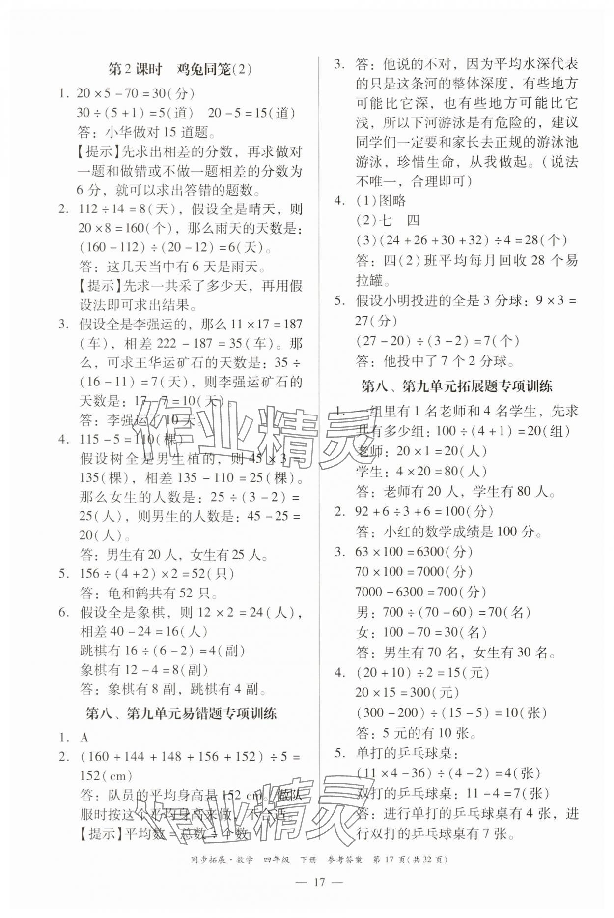 《2025年同步拓展四年级数学下册人教版中山专版》