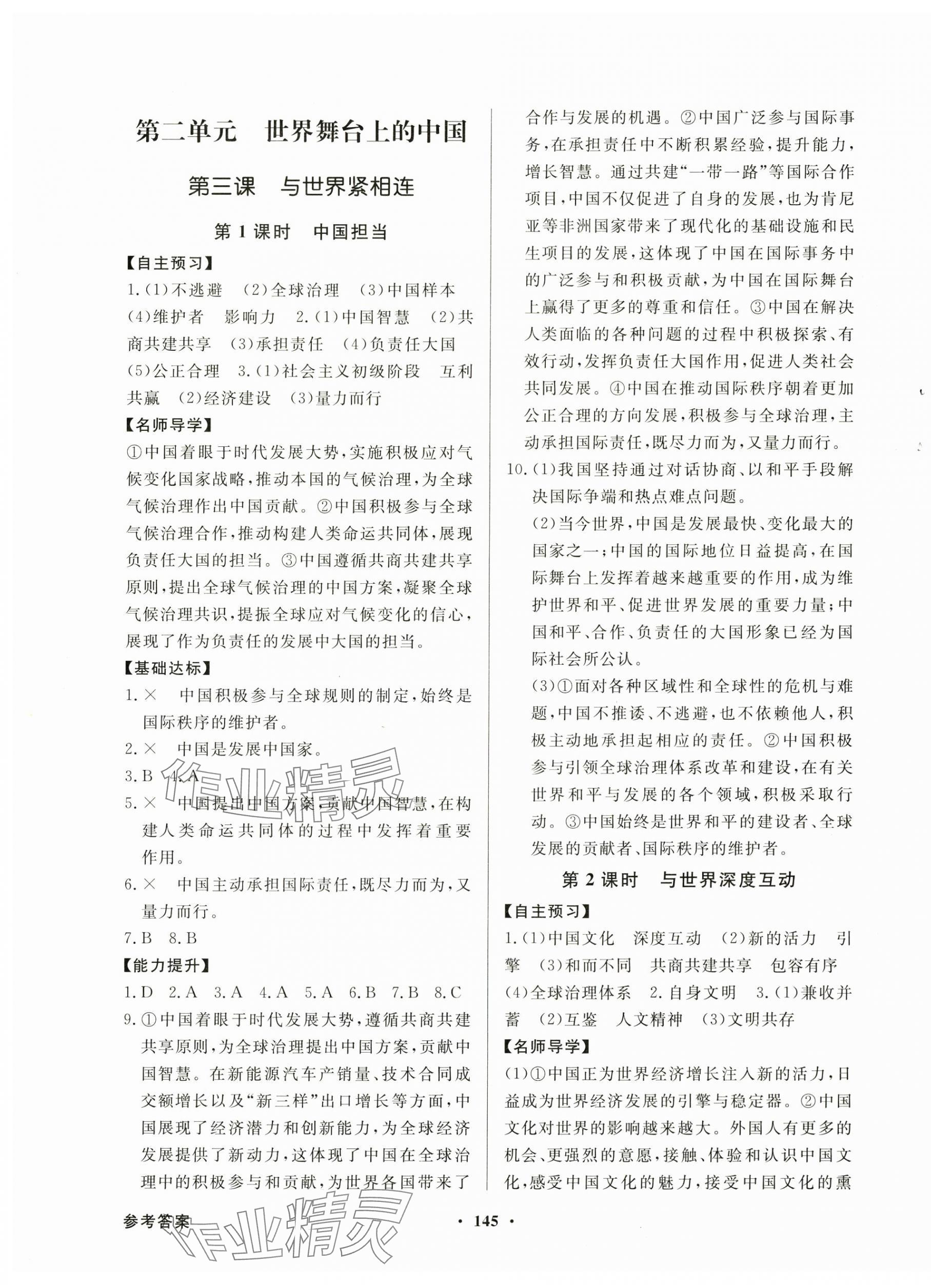 注:目前有些书本章节名称可能整理的还不是很完善,但都是按照顺序排列的,请同学们按照顺序仔细查找。练习册 2025年同步导学与优化训练九年级道德与法治下册人教版 答案主要是用来给同学们做完题方便对答案用的,请勿直接抄袭。