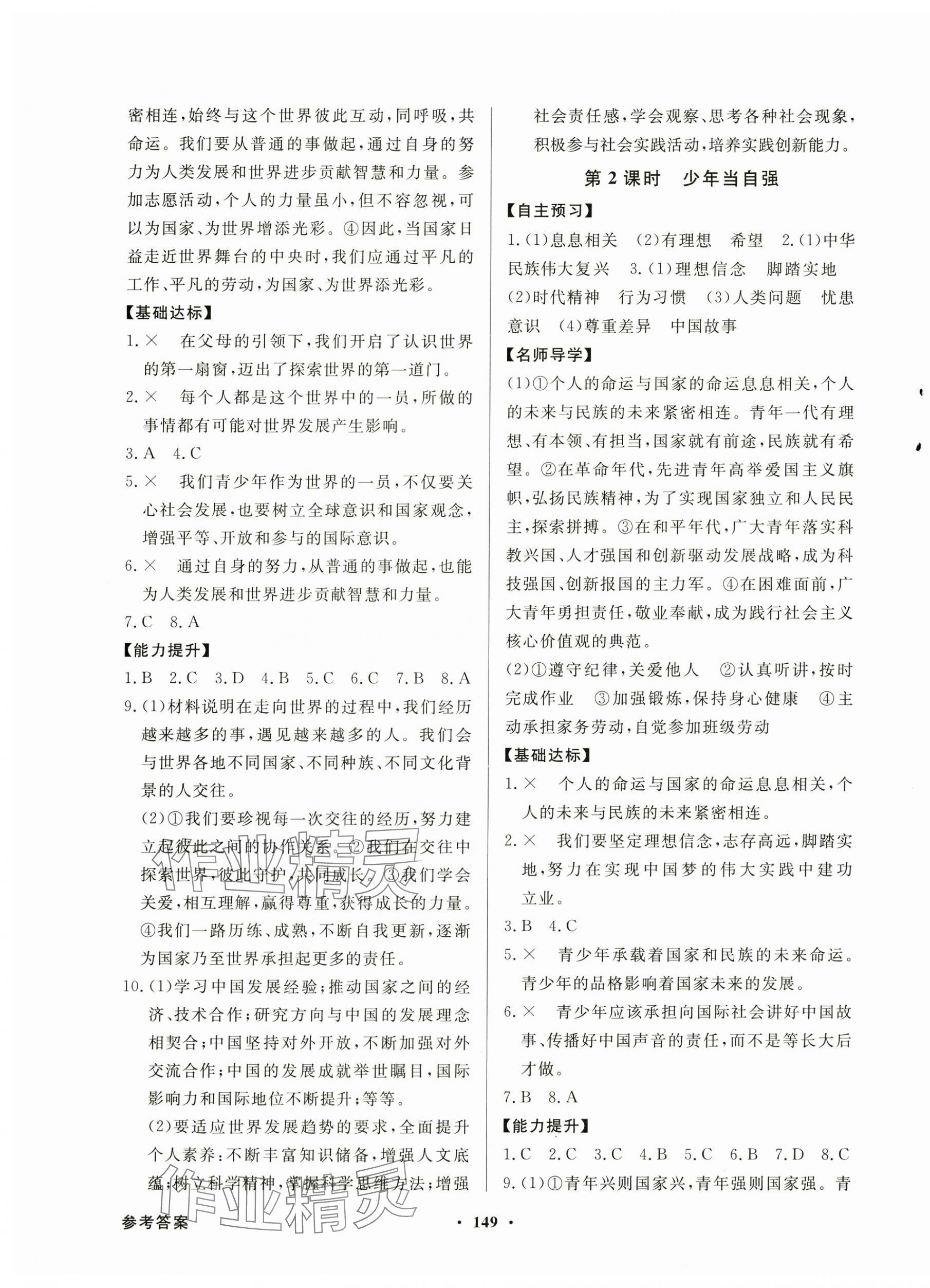 注:目前有些书本章节名称可能整理的还不是很完善,但都是按照顺序排列的,请同学们按照顺序仔细查找。练习册 2025年同步导学与优化训练九年级道德与法治下册人教版 答案主要是用来给同学们做完题方便对答案用的,请勿直接抄袭。