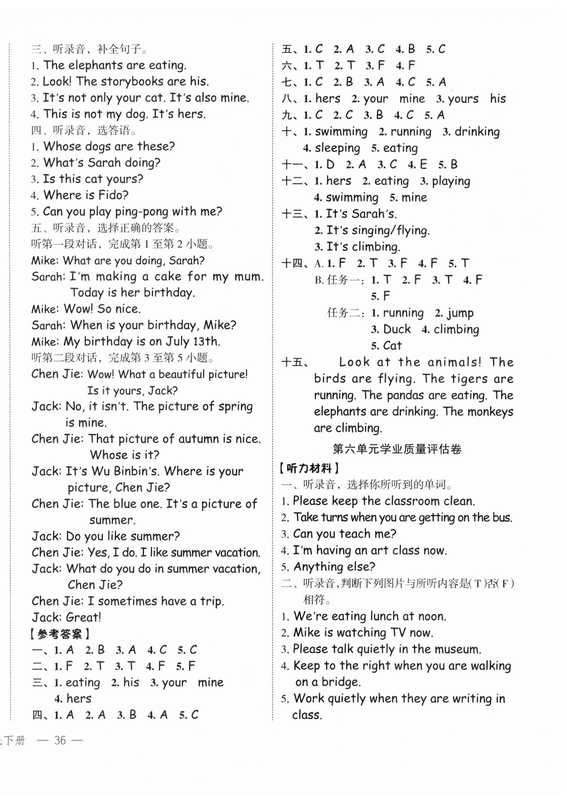 注:目前有些书本章节名称可能整理的还不是很完善,但都是按照顺序排列的,请同学们按照顺序仔细查找。练习册 2025年名师面对面先学后练五年级英语下册人教版 答案主要是用来给同学们做完题方便对答案用的,请勿直接抄袭。