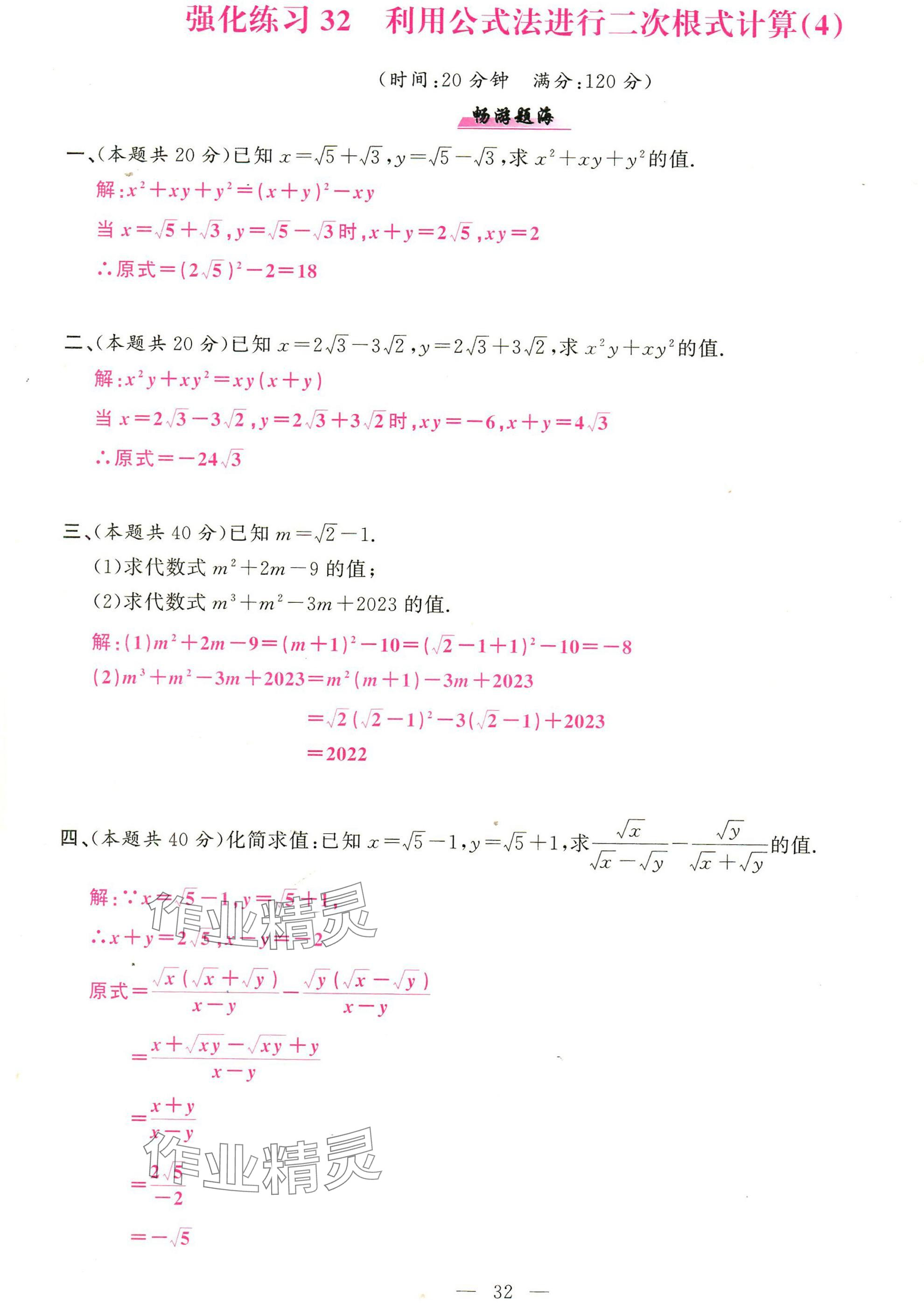 《2025年高手点题计算攻略八年级数学下册人教版》