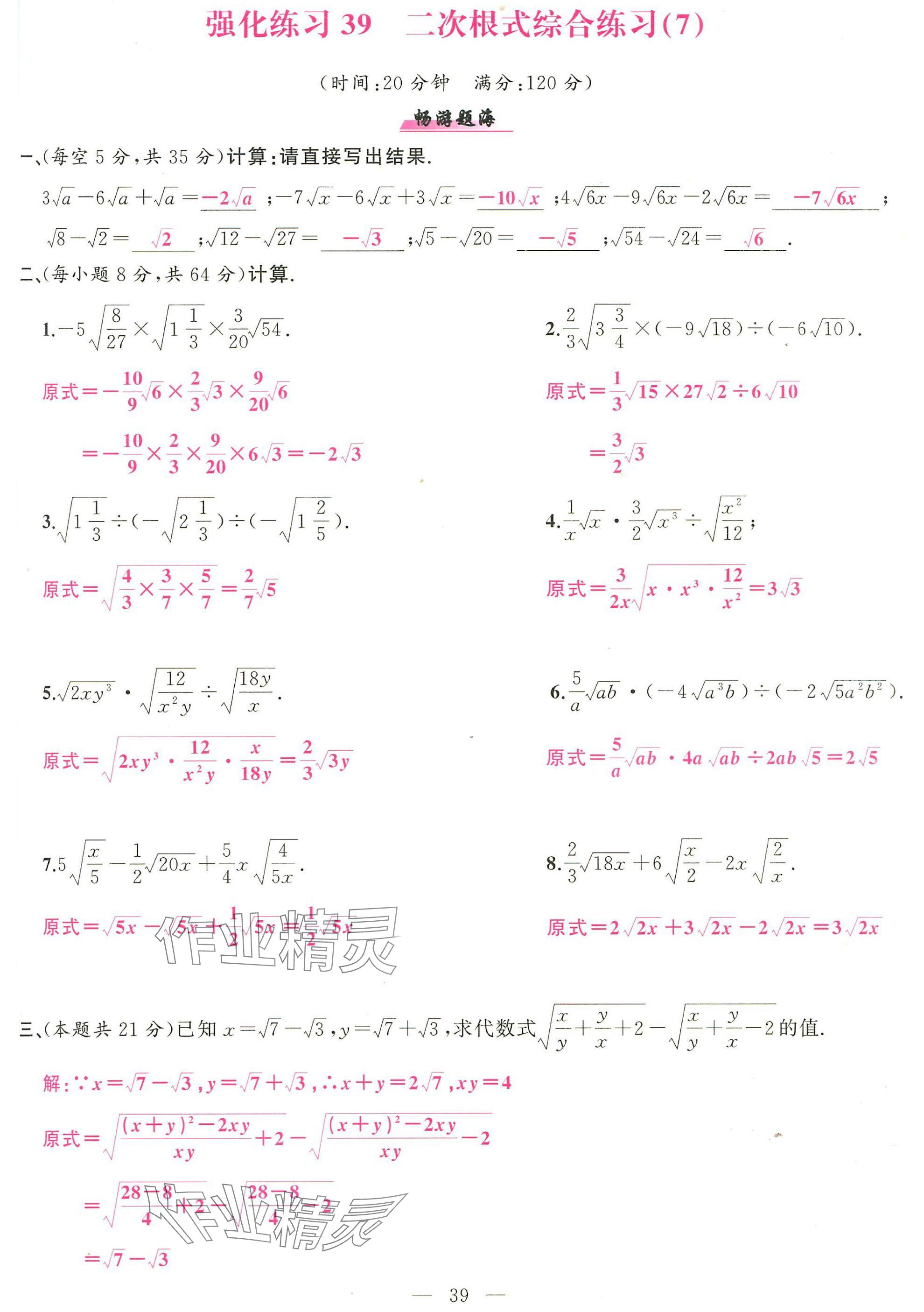 《2025年高手点题计算攻略八年级数学下册人教版》