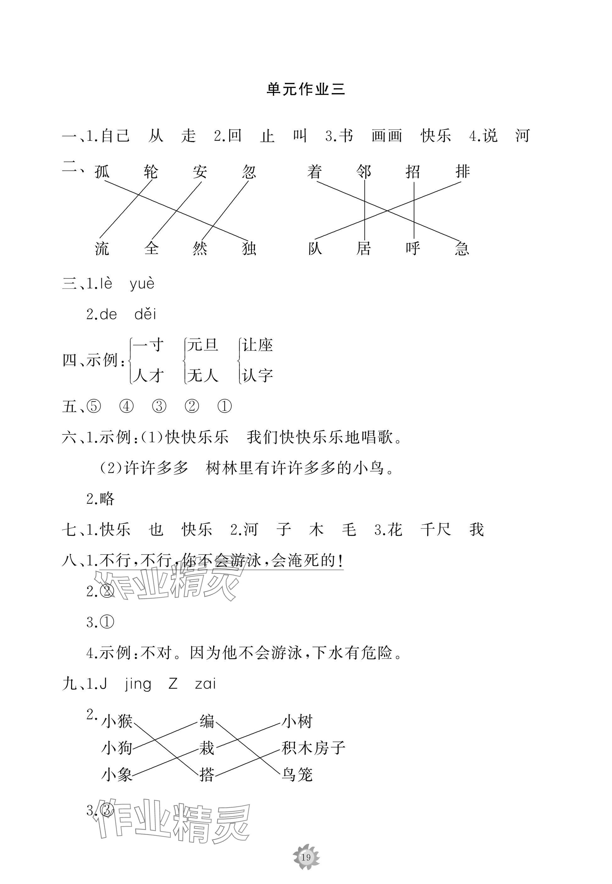 注:目前有些书本章节名称可能整理的还不是很完善,但都是按照顺序排列的,请同学们按照顺序仔细查找。练习册 2025年同步练习册智慧作业一年级语文下册人教版 答案主要是用来给同学们做完题方便对答案用的,请勿直接抄袭。