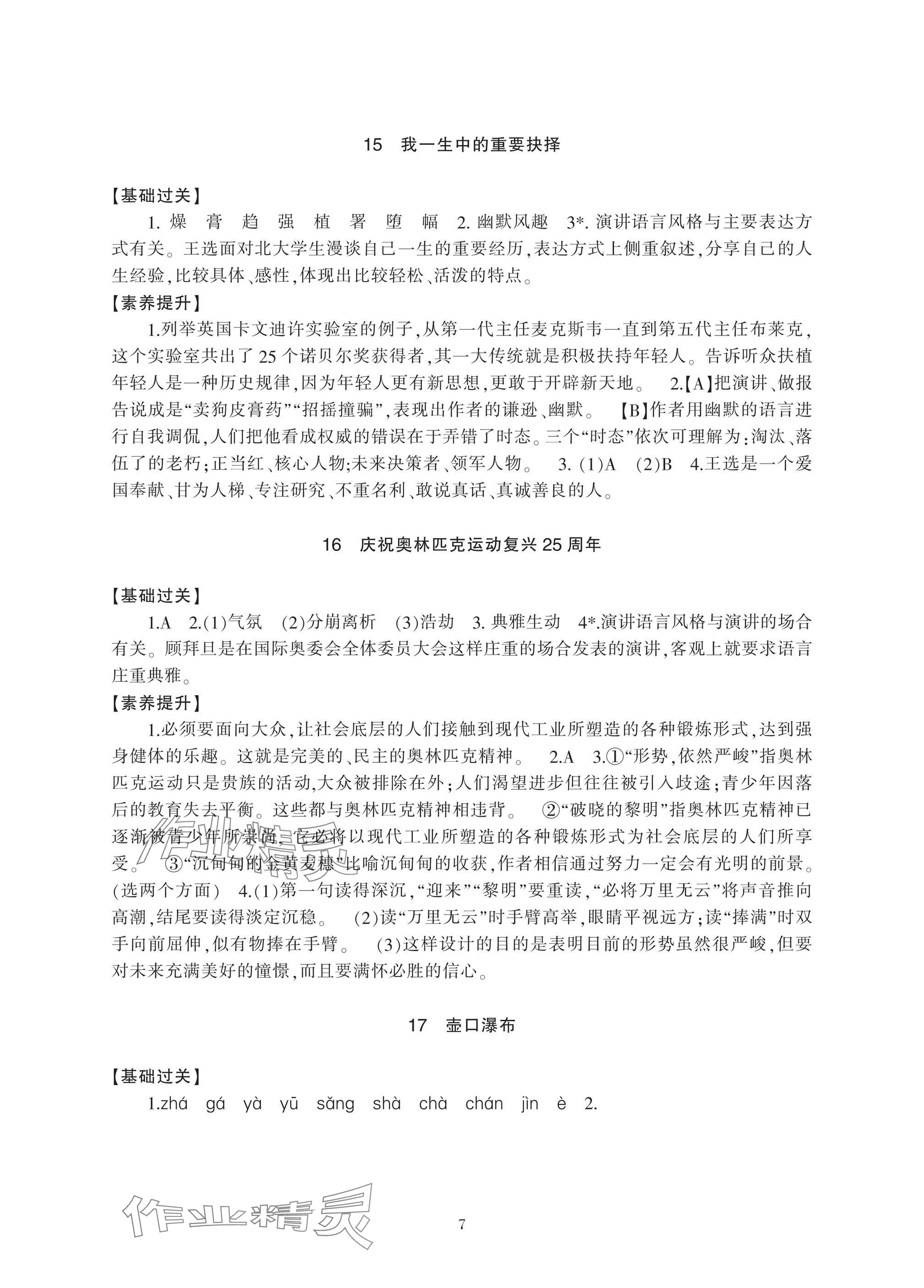 注:目前有些书本章节名称可能整理的还不是很完善,但都是按照顺序排列的,请同学们按照顺序仔细查找。练习册 2025年新课标学习方法指导丛书八年级语文下册人教版 答案主要是用来给同学们做完题方便对答案用的,请勿直接抄袭。