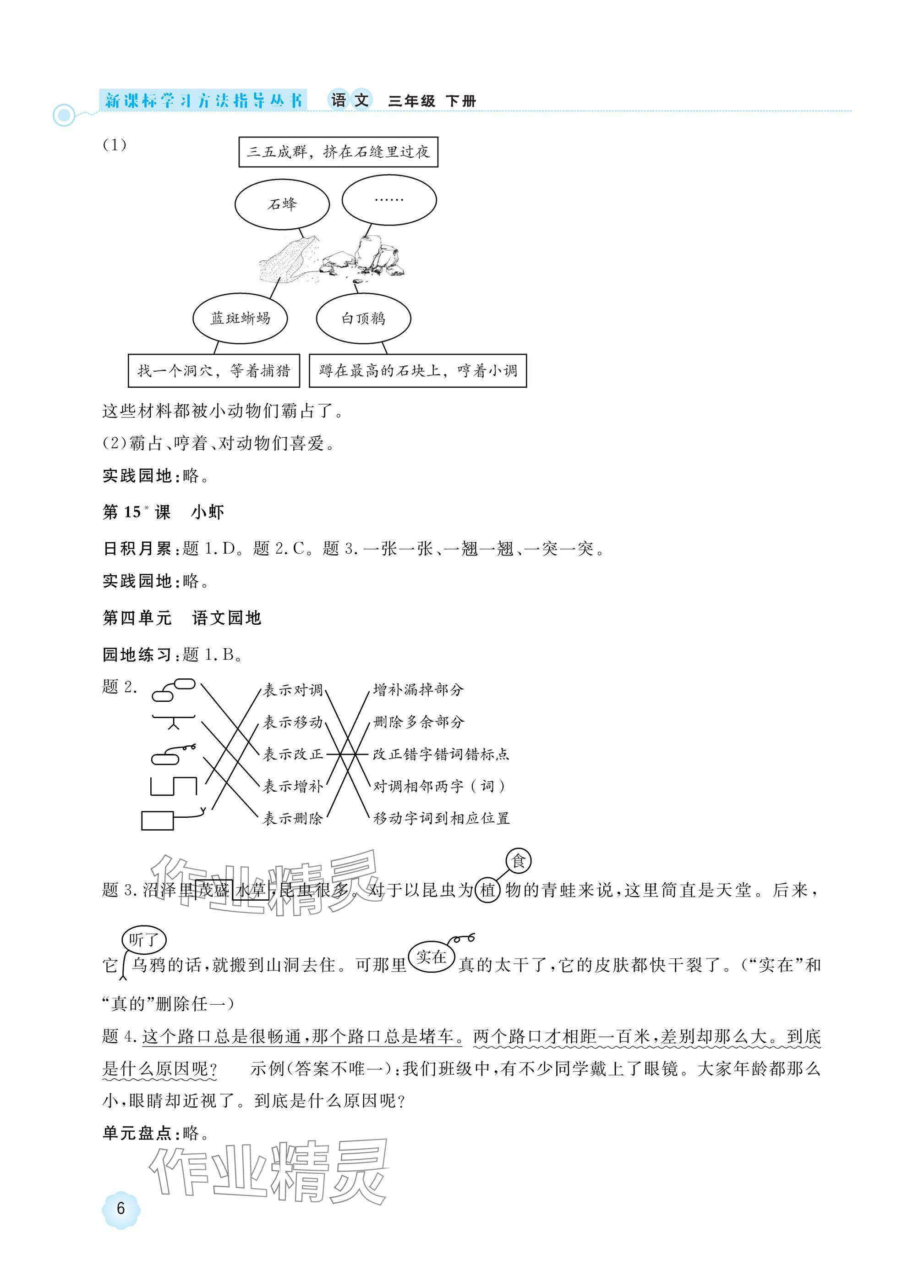 注:目前有些书本章节名称可能整理的还不是很完善,但都是按照顺序排列的,请同学们按照顺序仔细查找。练习册 2025年新课标学习方法指导丛书三年级语文下册人教版 答案主要是用来给同学们做完题方便对答案用的,请勿直接抄袭。