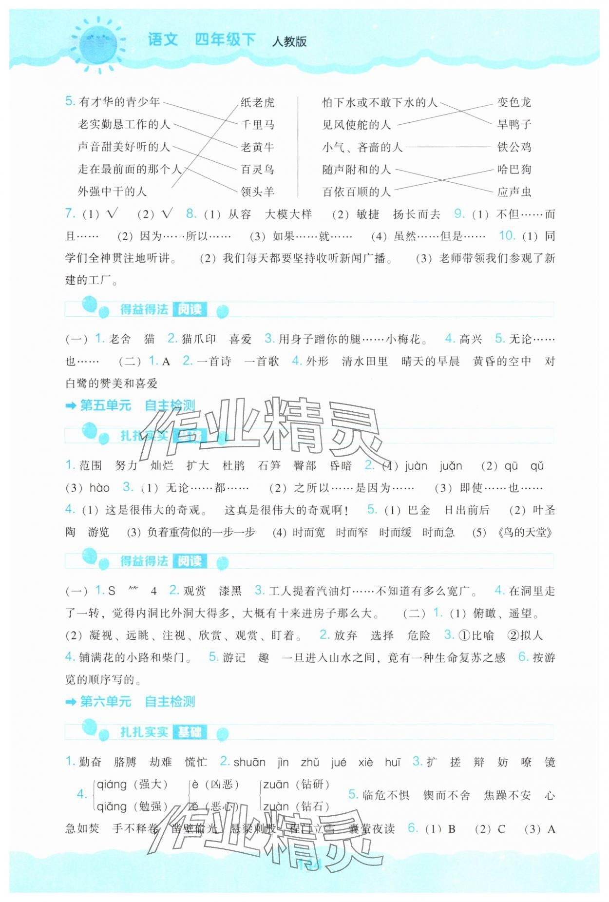 注:目前有些书本章节名称可能整理的还不是很完善,但都是按照顺序排列的,请同学们按照顺序仔细查找。练习册 2025年新课程能力培养四年级语文下册人教版 答案主要是用来给同学们做完题方便对答案用的,请勿直接抄袭。