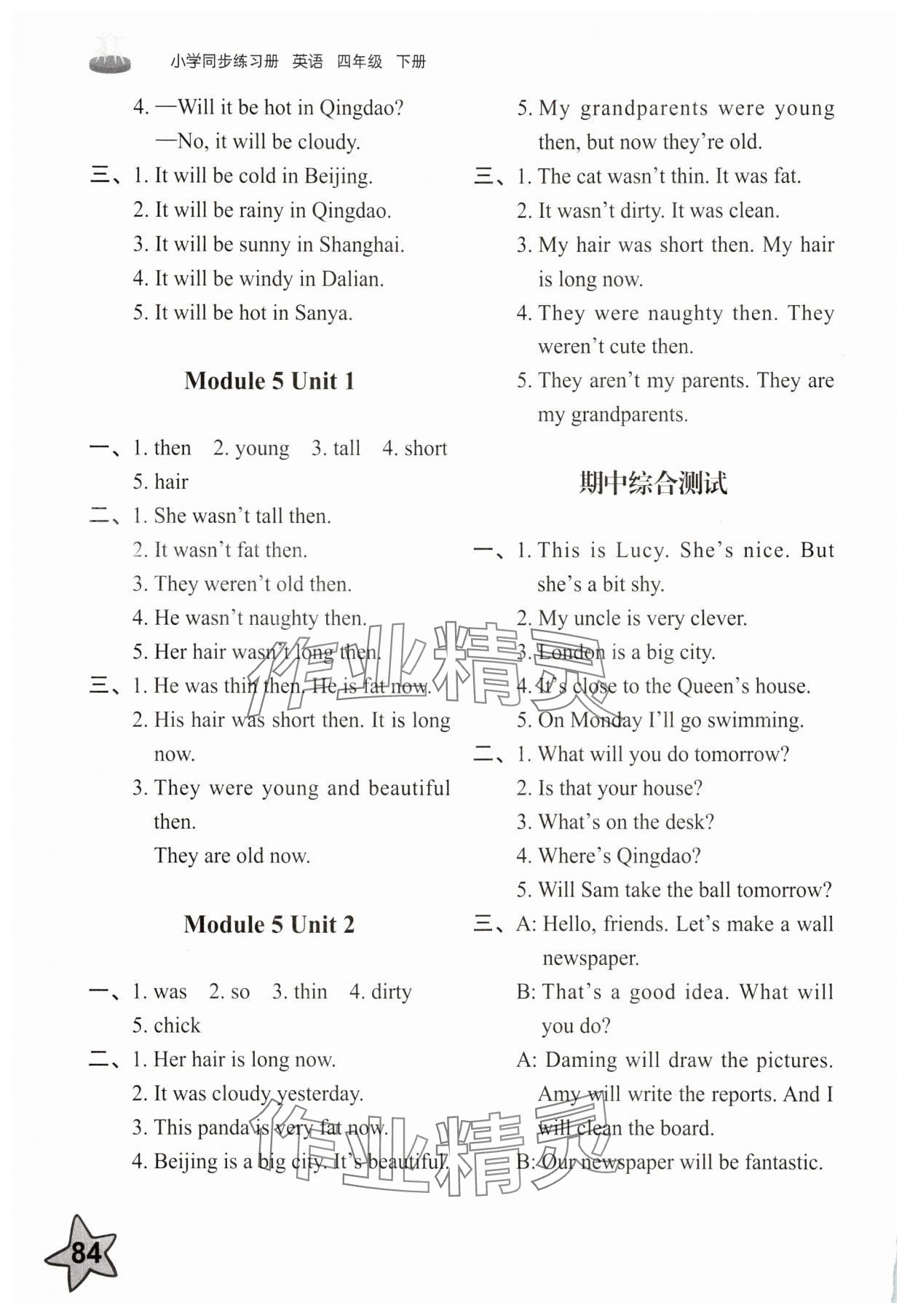 注:目前有些书本章节名称可能整理的还不是很完善,但都是按照顺序排列的,请同学们按照顺序仔细查找。练习册 2025年同步练习册四年级英语下册外研版山东友谊出版社 答案主要是用来给同学们做完题方便对答案用的,请勿直接抄袭。