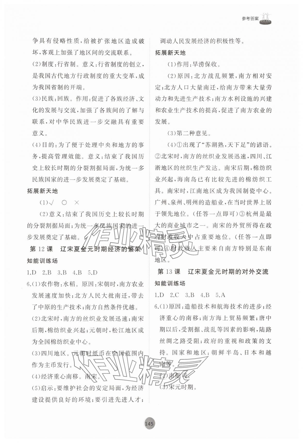 2025年同步练习册山东友谊出版社中国历史第二册人教版五四制