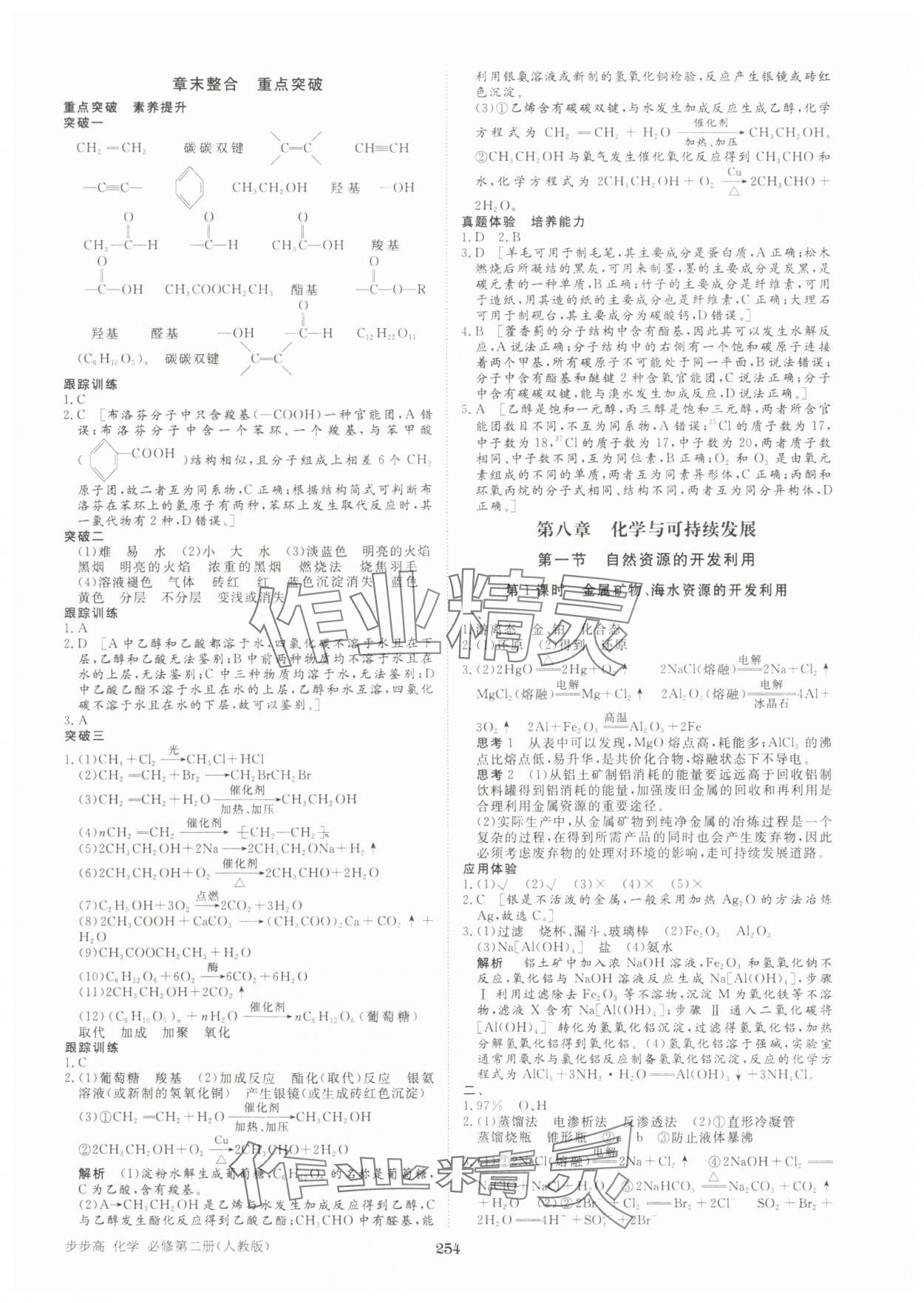 注:目前有些书本章节名称可能整理的还不是很完善,但都是按照顺序排列的,请同学们按照顺序仔细查找。练习册 2025年步步高学习笔记高中化学必修第二册人教版 答案主要是用来给同学们做完题方便对答案用的,请勿直接抄袭。