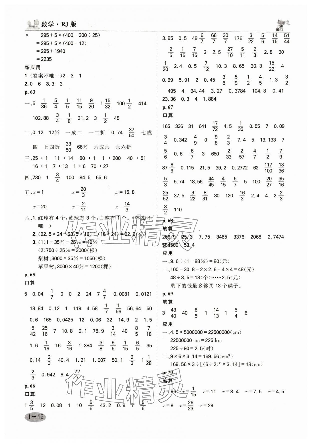 注:目前有些书本章节名称可能整理的还不是很完善,但都是按照顺序排列的,请同学们按照顺序仔细查找。练习册 2025年口算神童六年级数学下册人教版 答案主要是用来给同学们做完题方便对答案用的,请勿直接抄袭。