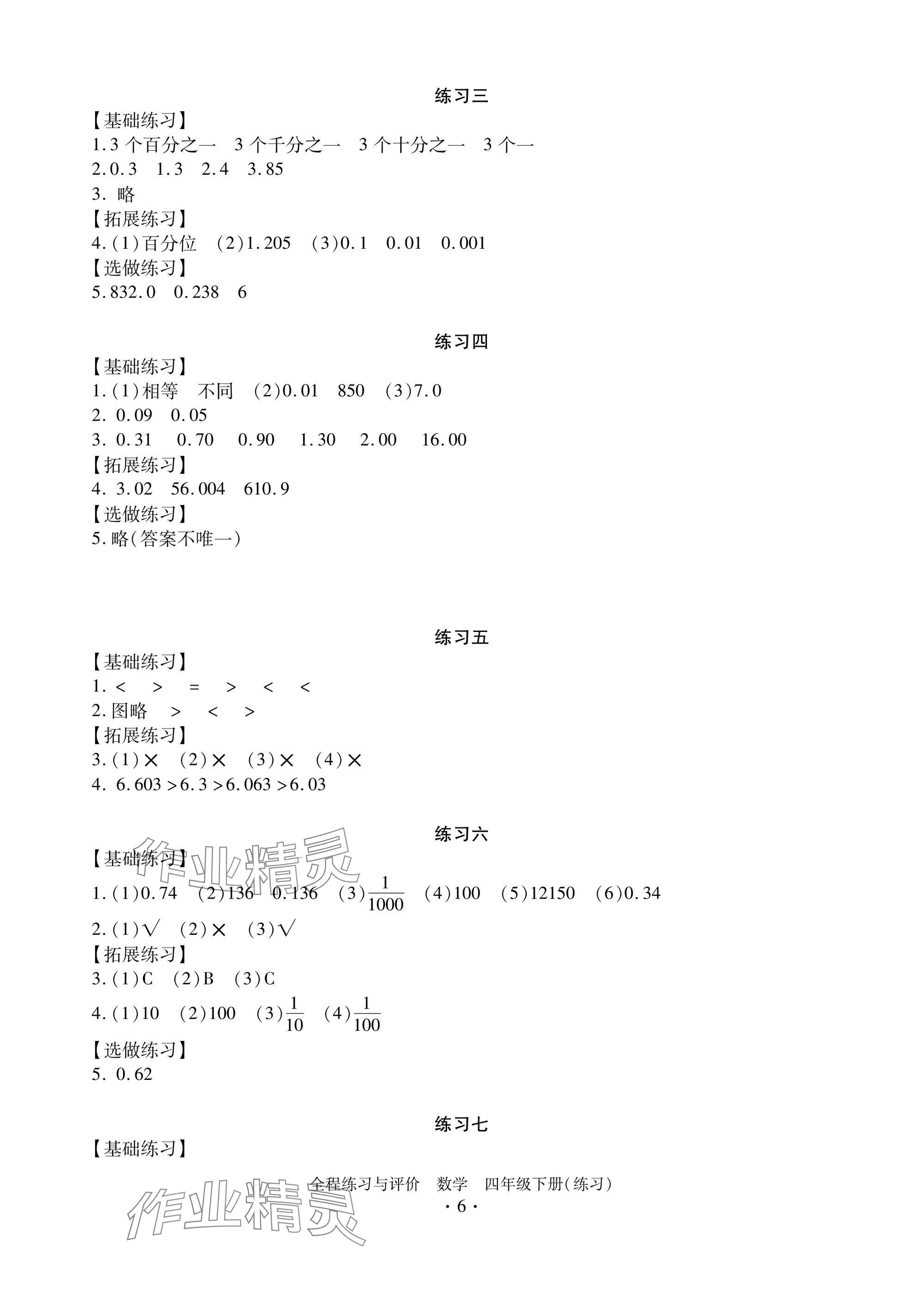 《2025年全程练习与评价四年级数学下册人教版练习版》