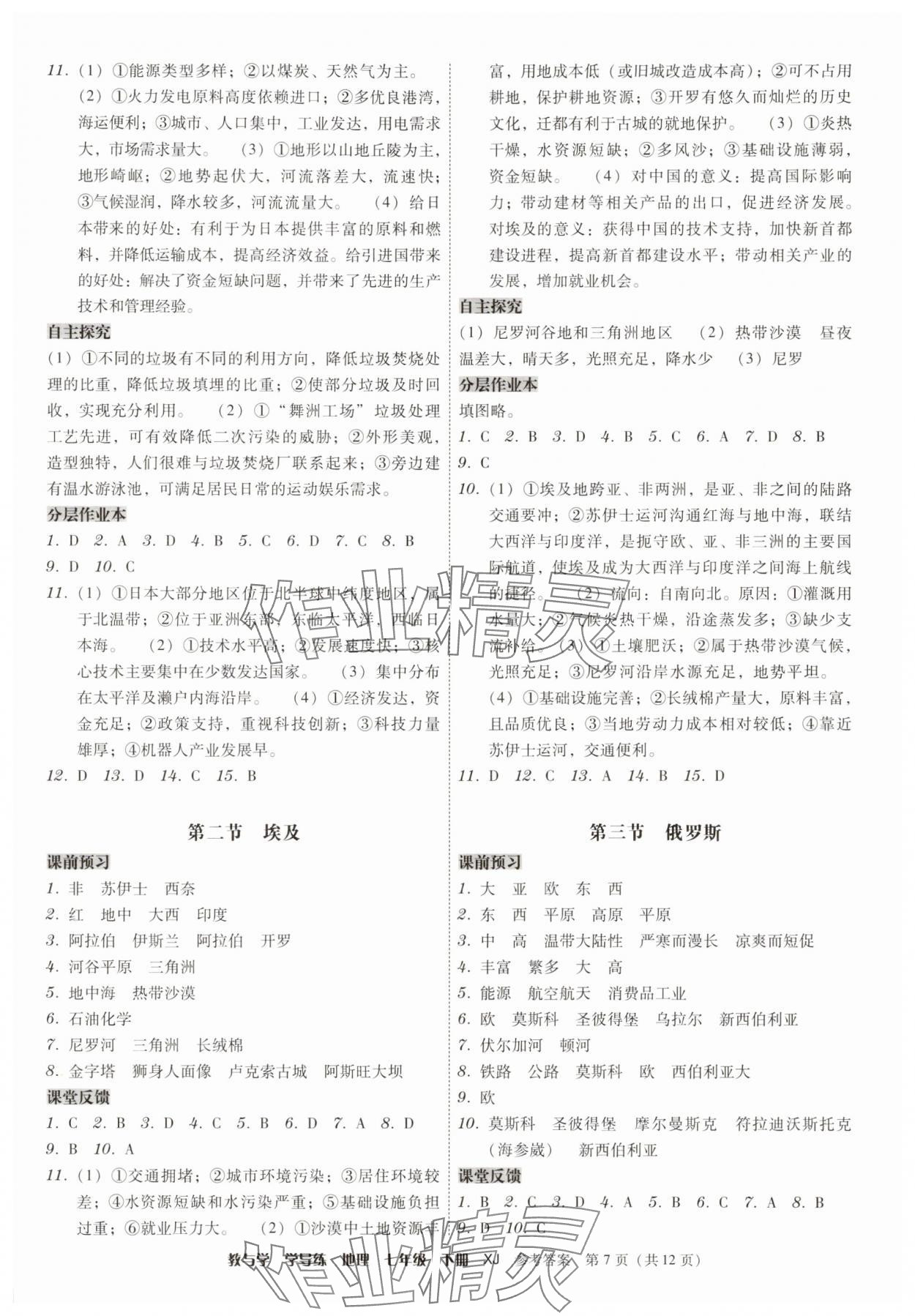 注:目前有些书本章节名称可能整理的还不是很完善,但都是按照顺序排列的,请同学们按照顺序仔细查找。练习册 2025年教与学学导练七年级地理下册湘教版 答案主要是用来给同学们做完题方便对答案用的,请勿直接抄袭。