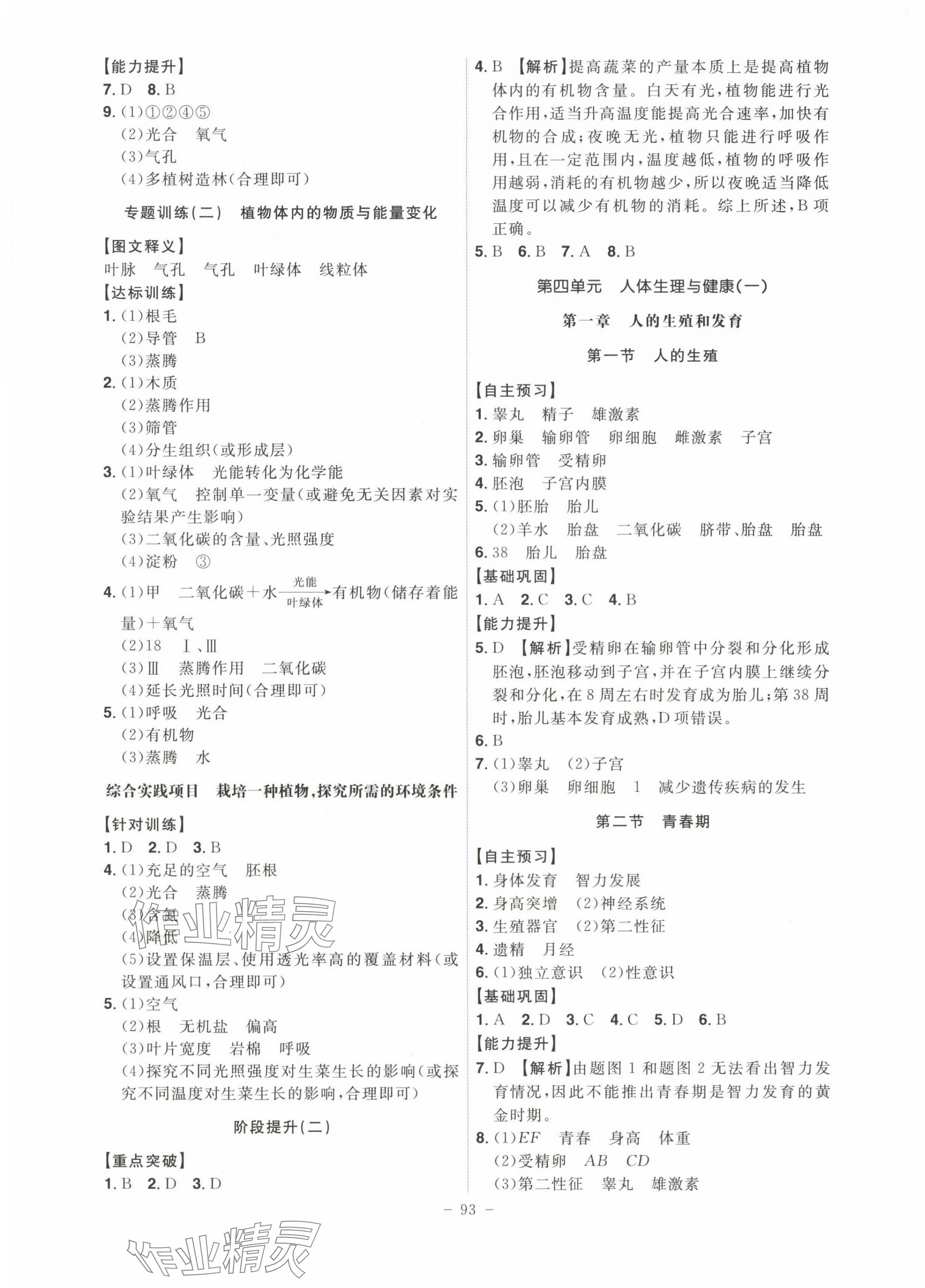 注:目前有些书本章节名称可能整理的还不是很完善,但都是按照顺序排列的,请同学们按照顺序仔细查找。练习册 2025年课时A计划七年级生物下册人教版 答案主要是用来给同学们做完题方便对答案用的,请勿直接抄袭。