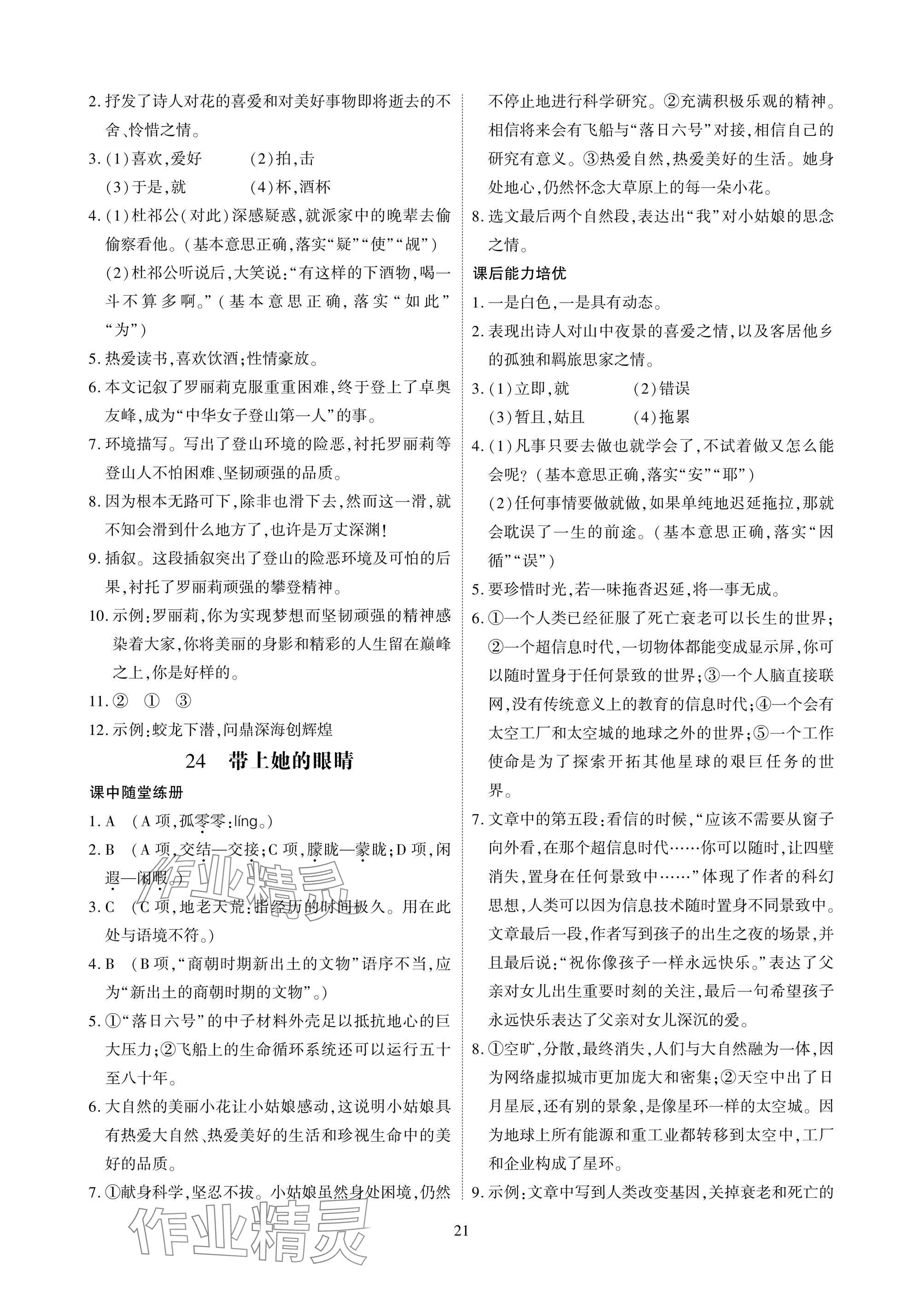 注:目前有些书本章节名称可能整理的还不是很完善,但都是按照顺序排列的,请同学们按照顺序仔细查找。练习册 2025年优课堂给力A加七年级语文下册人教版 答案主要是用来给同学们做完题方便对答案用的,请勿直接抄袭。
