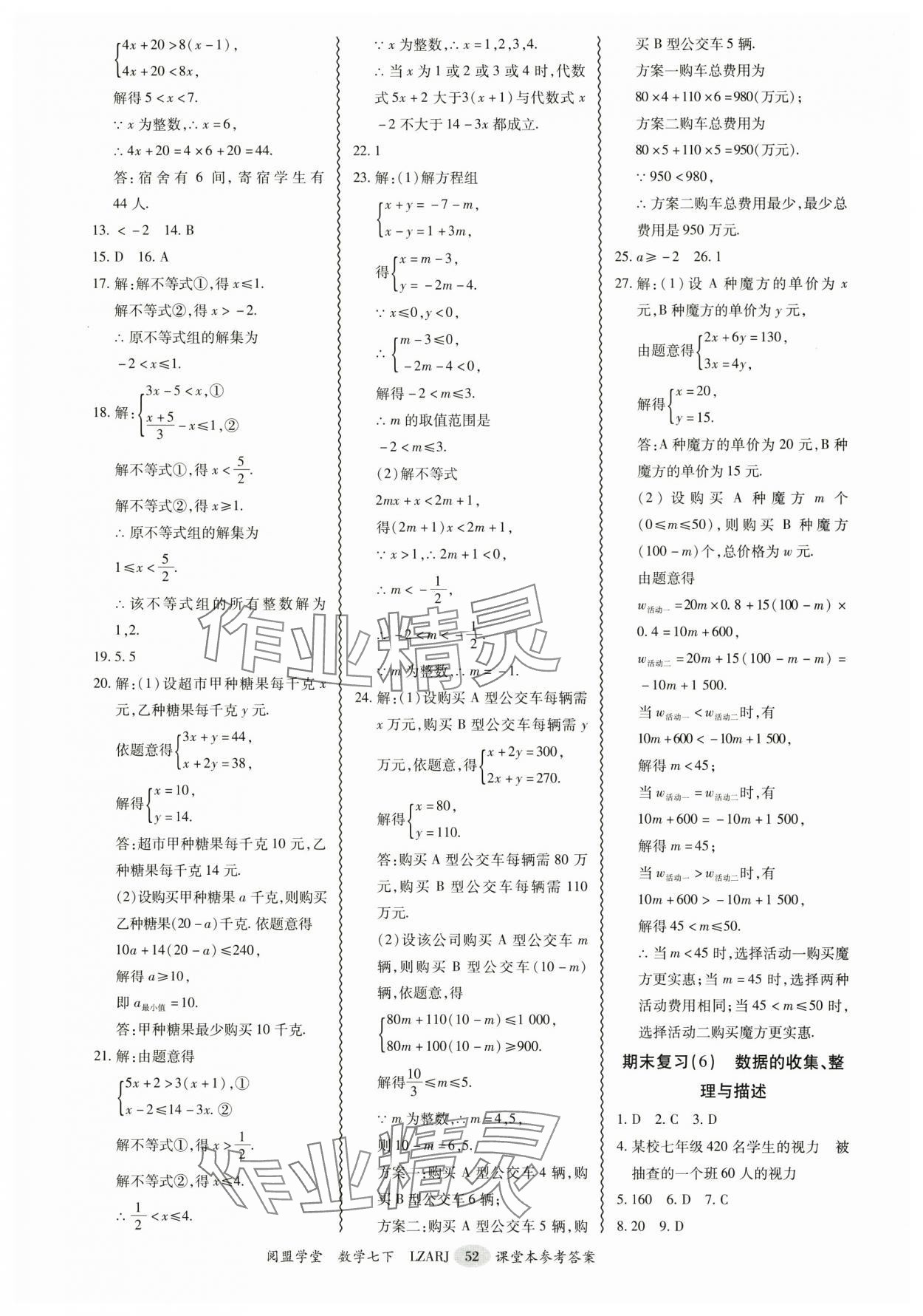 注:目前有些书本章节名称可能整理的还不是很完善,但都是按照顺序排列的,请同学们按照顺序仔细查找。练习册 2025年零障碍导教导学案七年级数学下册人教版 答案主要是用来给同学们做完题方便对答案用的,请勿直接抄袭。