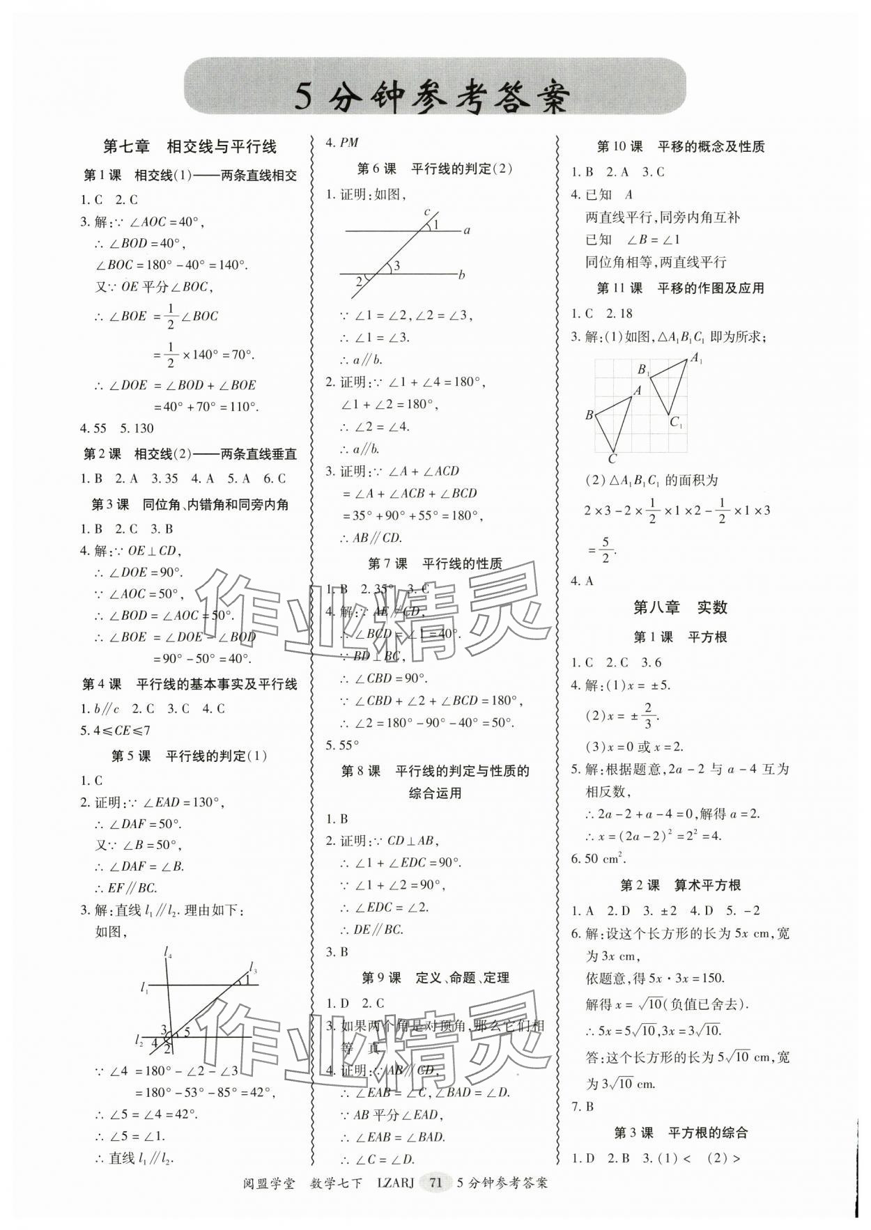 注:目前有些书本章节名称可能整理的还不是很完善,但都是按照顺序排列的,请同学们按照顺序仔细查找。练习册 2025年零障碍导教导学案七年级数学下册人教版 答案主要是用来给同学们做完题方便对答案用的,请勿直接抄袭。