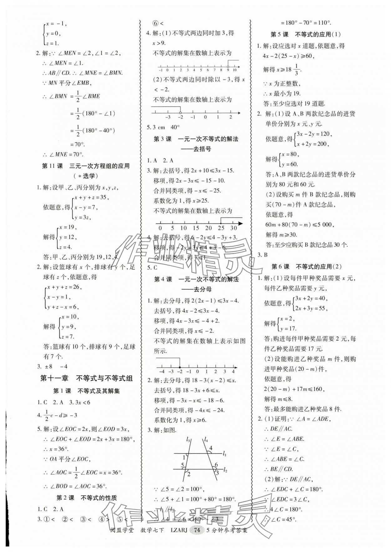 注:目前有些书本章节名称可能整理的还不是很完善,但都是按照顺序排列的,请同学们按照顺序仔细查找。练习册 2025年零障碍导教导学案七年级数学下册人教版 答案主要是用来给同学们做完题方便对答案用的,请勿直接抄袭。