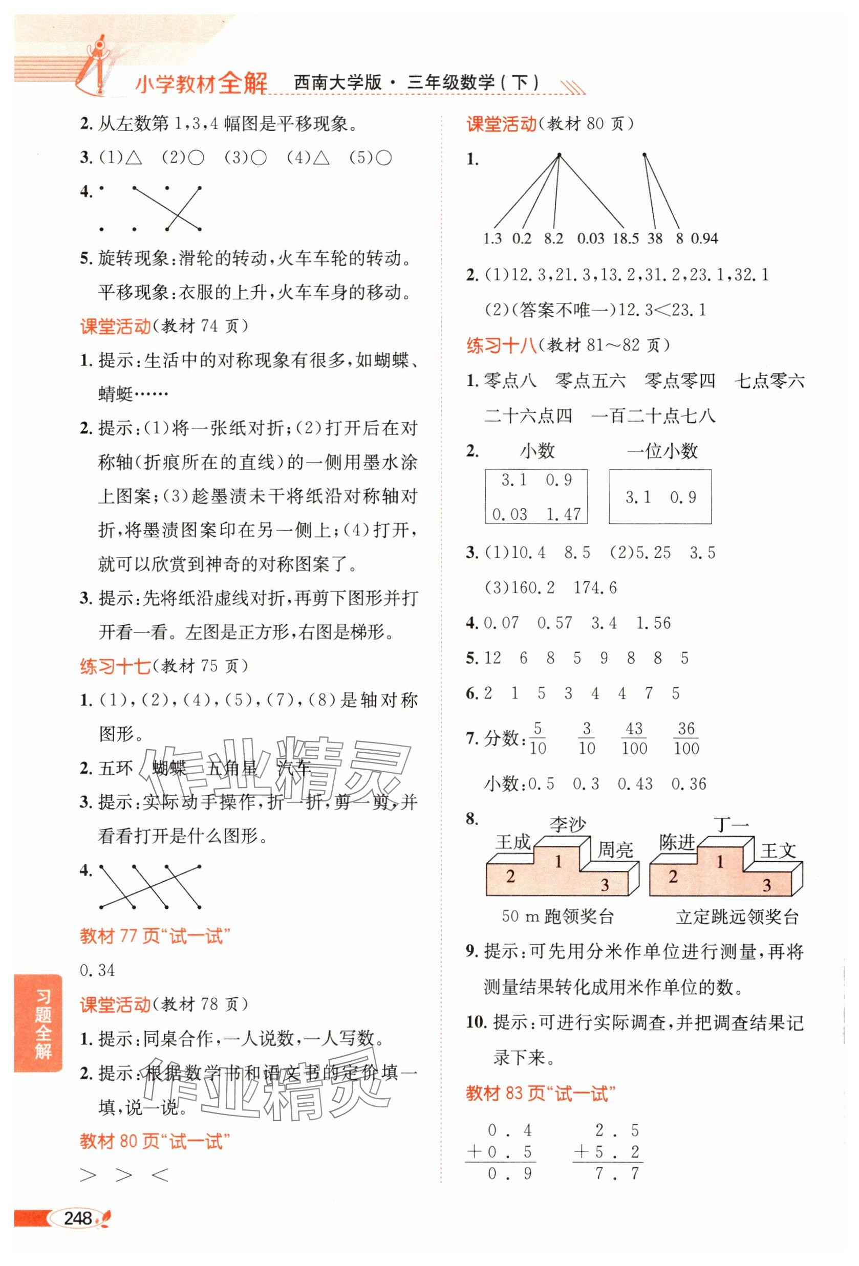 注:目前有些书本章节名称可能整理的还不是很完善,但都是按照顺序排列的,请同学们按照顺序仔细查找。练习册 2025年教材课本三年级数学下册西师大版 答案主要是用来给同学们做完题方便对答案用的,请勿直接抄袭。
