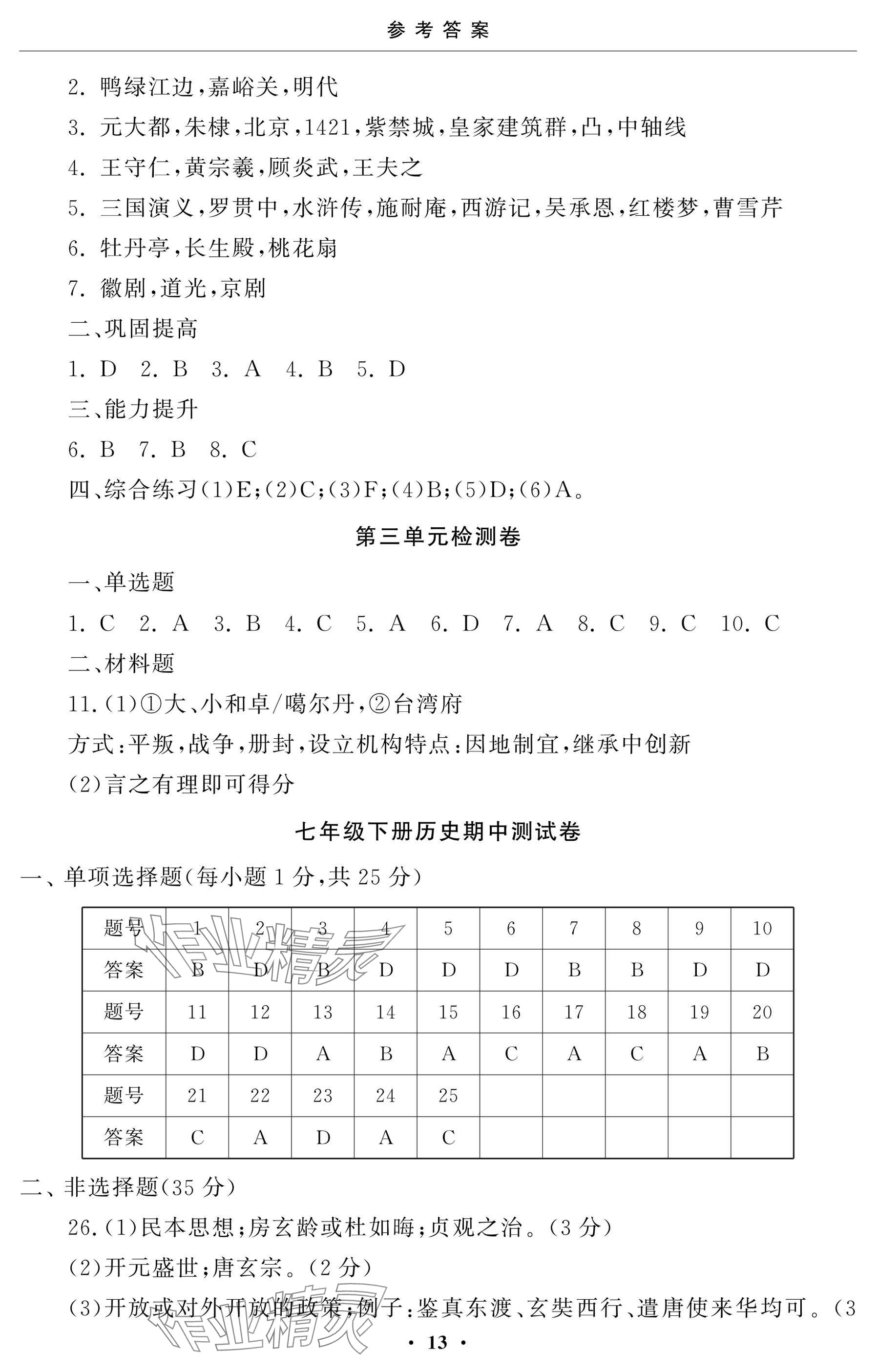 注:目前有些书本章节名称可能整理的还不是很完善,但都是按照顺序排列的,请同学们按照顺序仔细查找。练习册 2025年初中学练案七年级历史下册人教版 答案主要是用来给同学们做完题方便对答案用的,请勿直接抄袭。