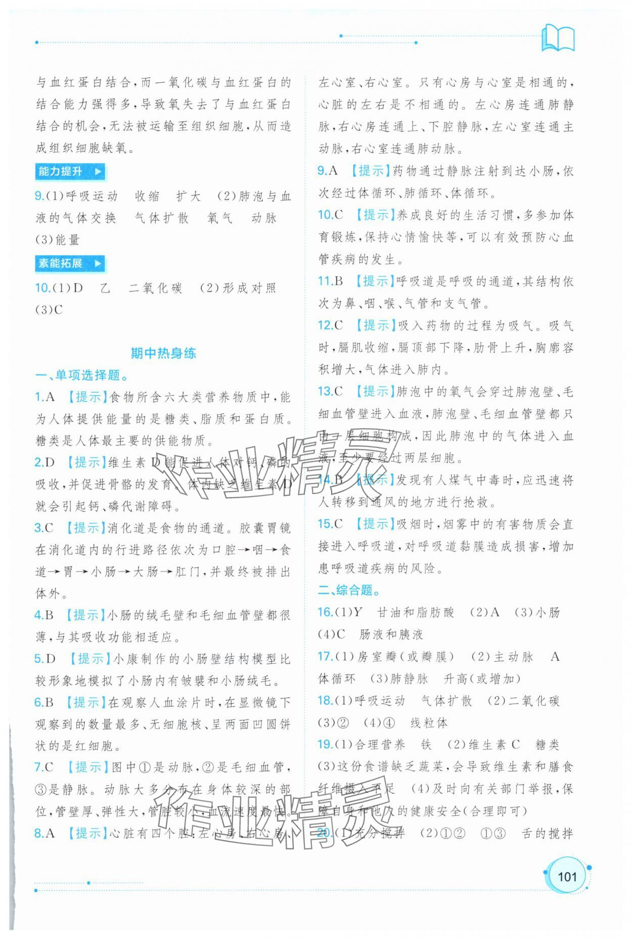 注:目前有些书本章节名称可能整理的还不是很完善,但都是按照顺序排列的,请同学们按照顺序仔细查找。练习册 2025年新课程学习与测评同步学习七年级生物下册冀少版 答案主要是用来给同学们做完题方便对答案用的,请勿直接抄袭。