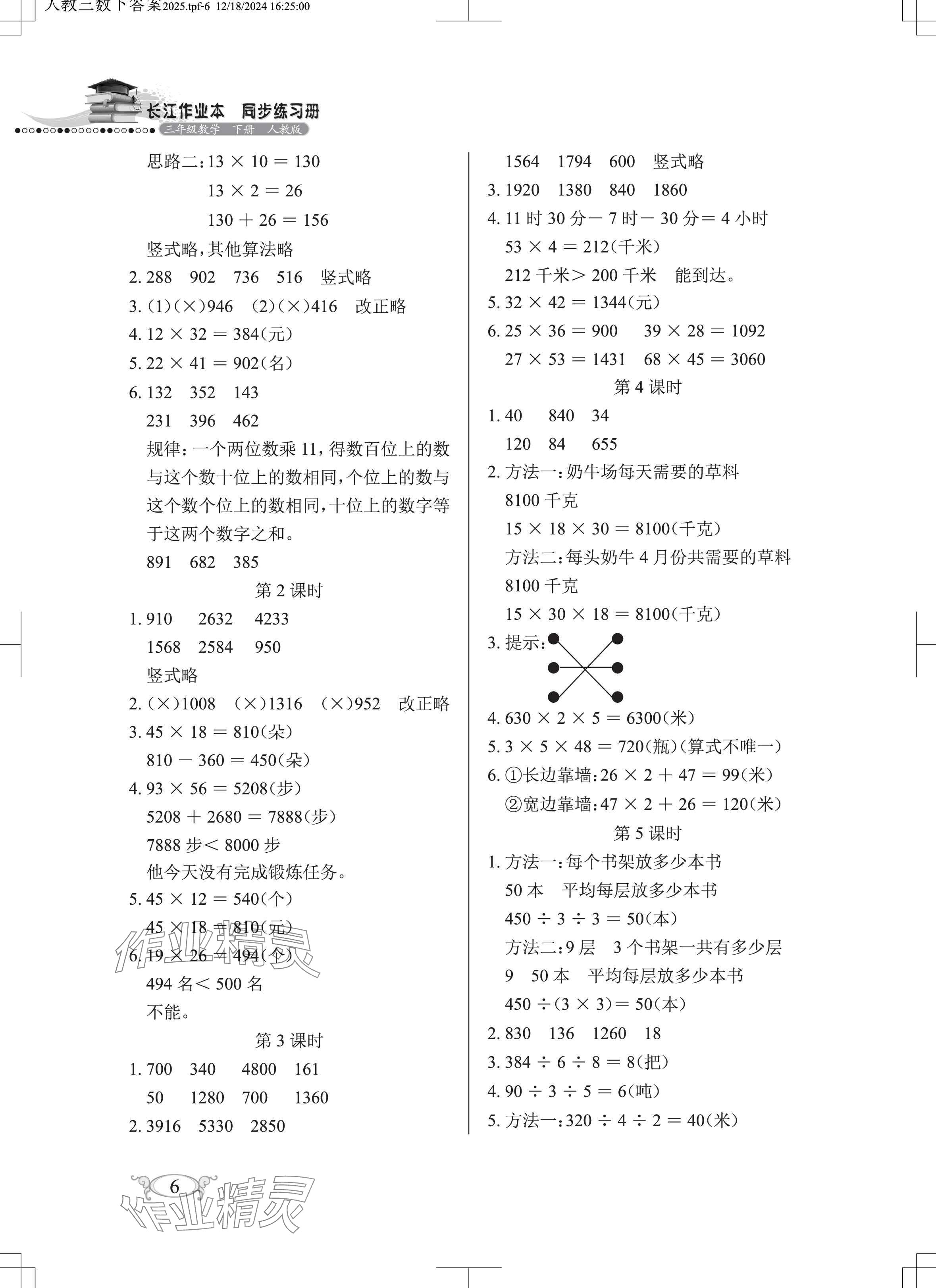 注:目前有些书本章节名称可能整理的还不是很完善,但都是按照顺序排列的,请同学们按照顺序仔细查找。练习册 2025年长江作业本同步练习册三年级数学下册人教版 答案主要是用来给同学们做完题方便对答案用的,请勿直接抄袭。
