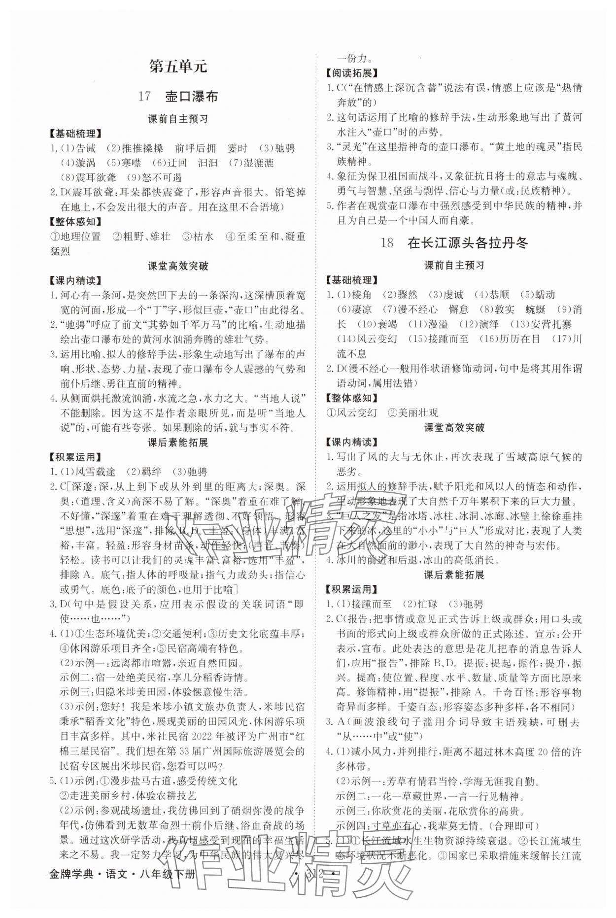 注:目前有些书本章节名称可能整理的还不是很完善,但都是按照顺序排列的,请同学们按照顺序仔细查找。练习册 2025年金牌学典八年级语文下册人教版 答案主要是用来给同学们做完题方便对答案用的,请勿直接抄袭。