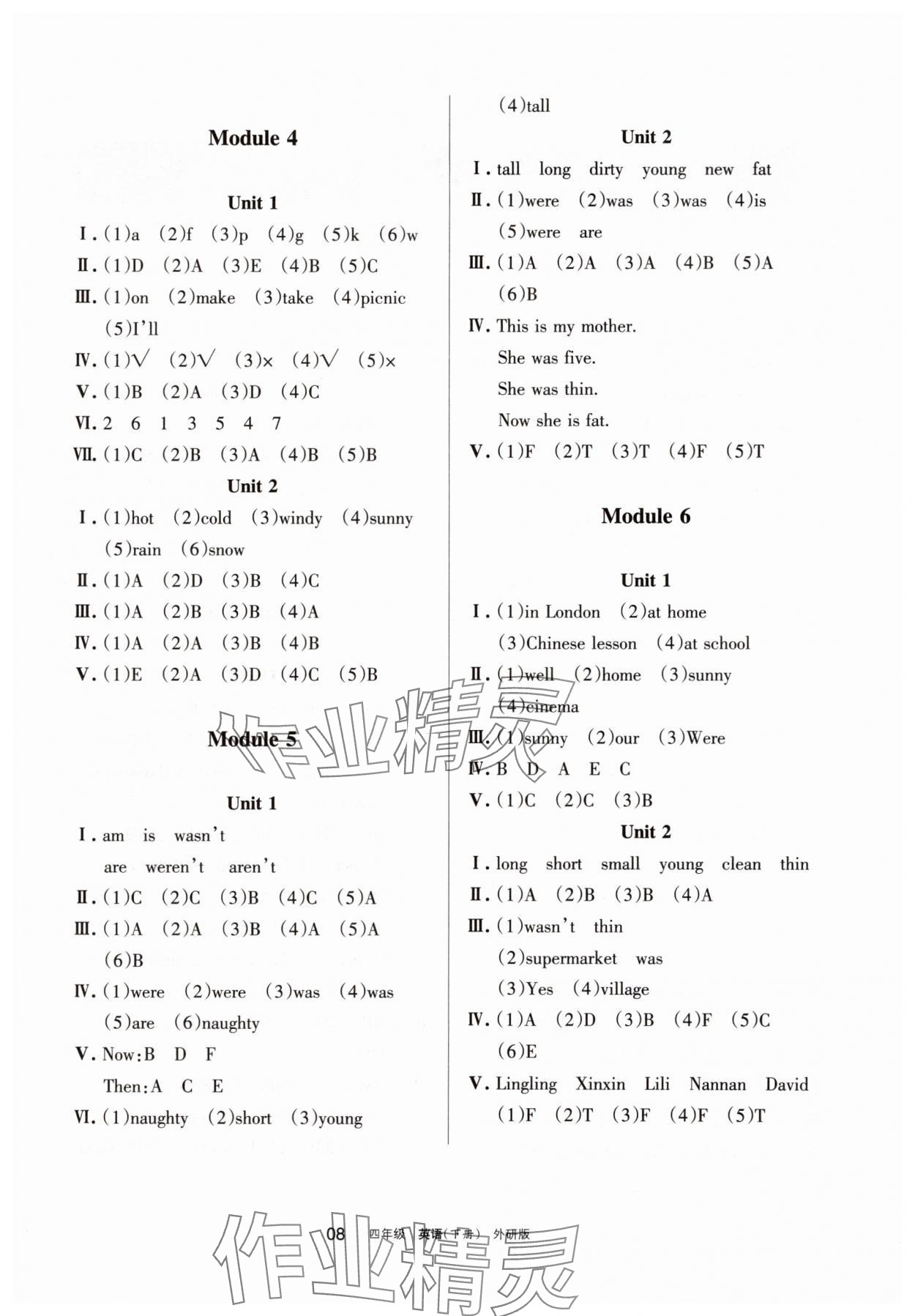 注:目前有些书本章节名称可能整理的还不是很完善,但都是按照顺序排列的,请同学们按照顺序仔细查找。练习册 2025年学习之友四年级英语下册外研版 答案主要是用来给同学们做完题方便对答案用的,请勿直接抄袭。