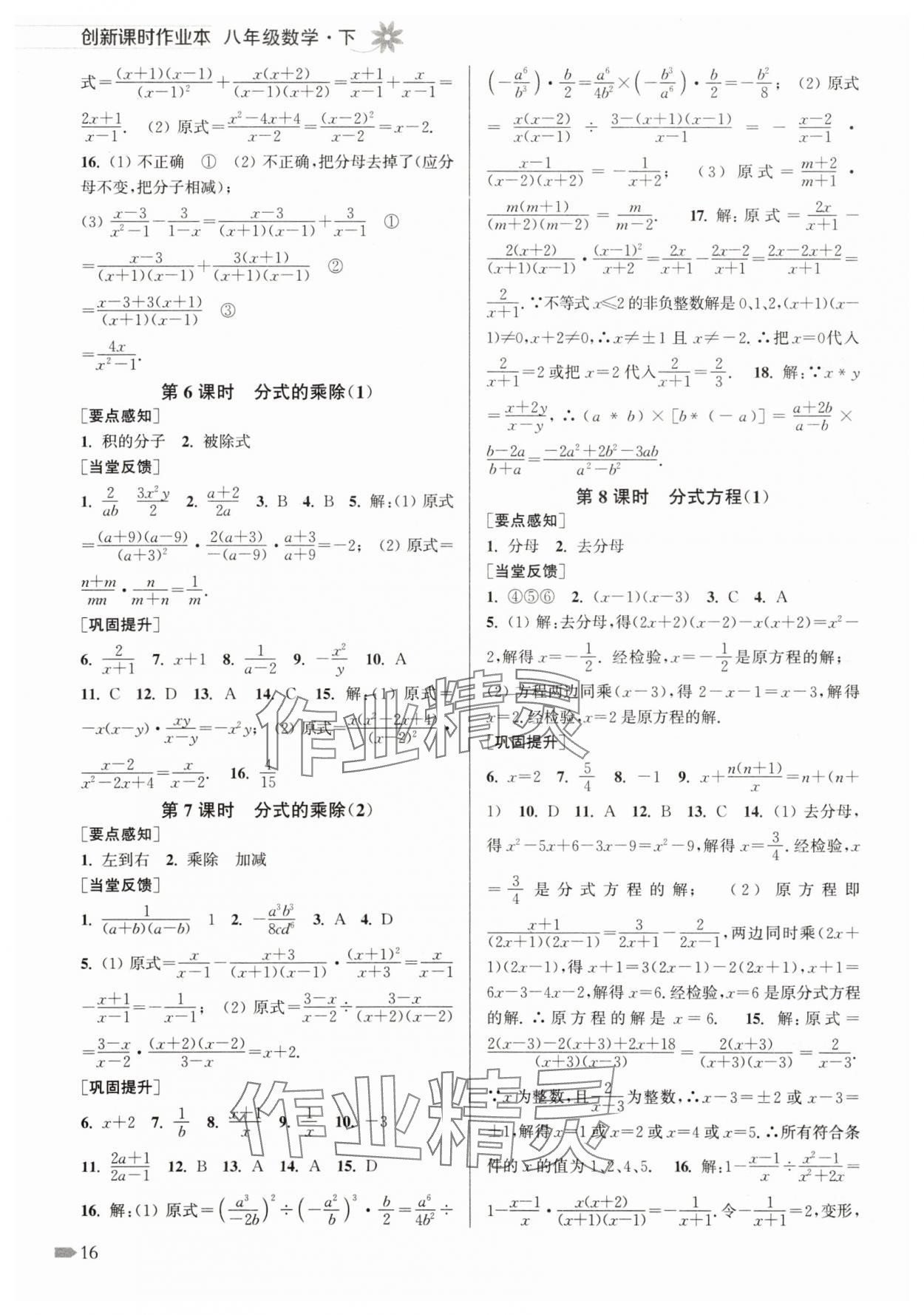 注:目前有些书本章节名称可能整理的还不是很完善,但都是按照顺序排列的,请同学们按照顺序仔细查找。练习册 2025年创新课时作业本八年级数学下册苏科版 答案主要是用来给同学们做完题方便对答案用的,请勿直接抄袭。