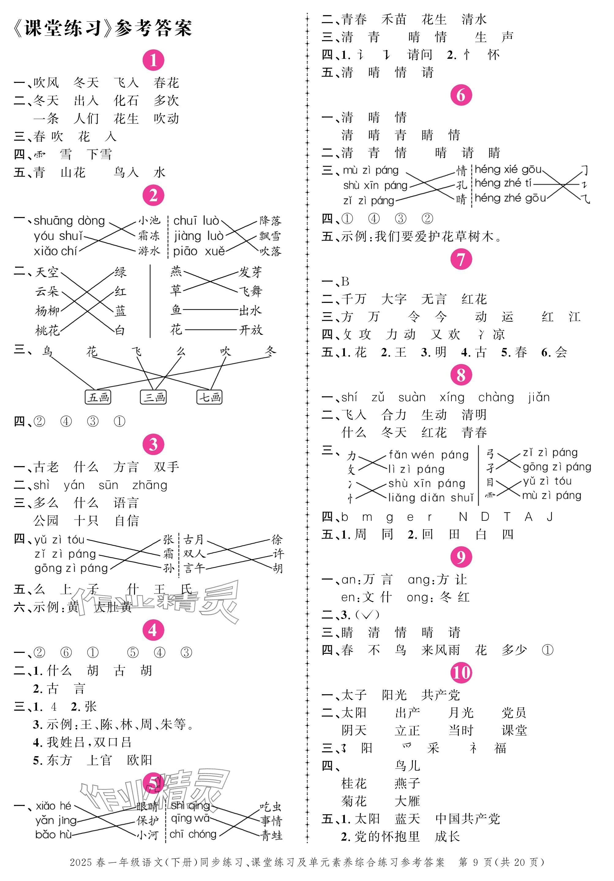 注:目前有些书本章节名称可能整理的还不是很完善,但都是按照顺序排列的,请同学们按照顺序仔细查找。练习册 2025年创新作业同步练习一年级语文下册人教版 答案主要是用来给同学们做完题方便对答案用的,请勿直接抄袭。