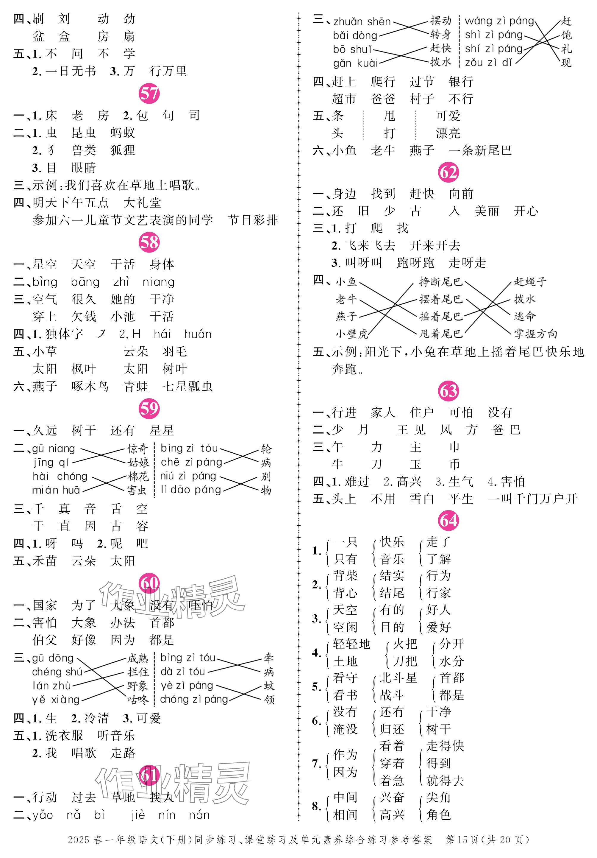 注:目前有些书本章节名称可能整理的还不是很完善,但都是按照顺序排列的,请同学们按照顺序仔细查找。练习册 2025年创新作业同步练习一年级语文下册人教版 答案主要是用来给同学们做完题方便对答案用的,请勿直接抄袭。