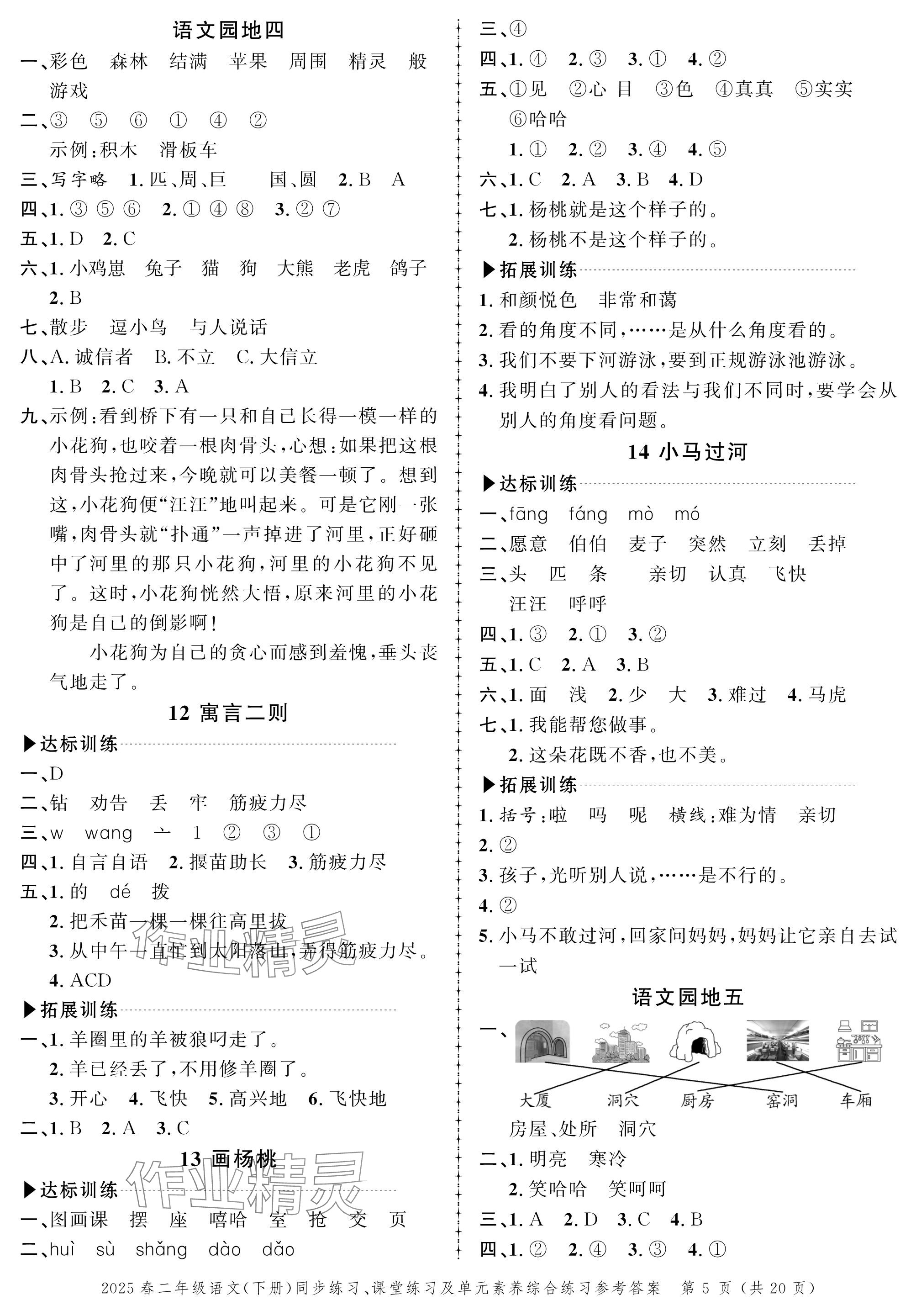 注:目前有些书本章节名称可能整理的还不是很完善,但都是按照顺序排列的,请同学们按照顺序仔细查找。练习册 2025年创新作业同步练习二年级语文下册人教版 答案主要是用来给同学们做完题方便对答案用的,请勿直接抄袭。
