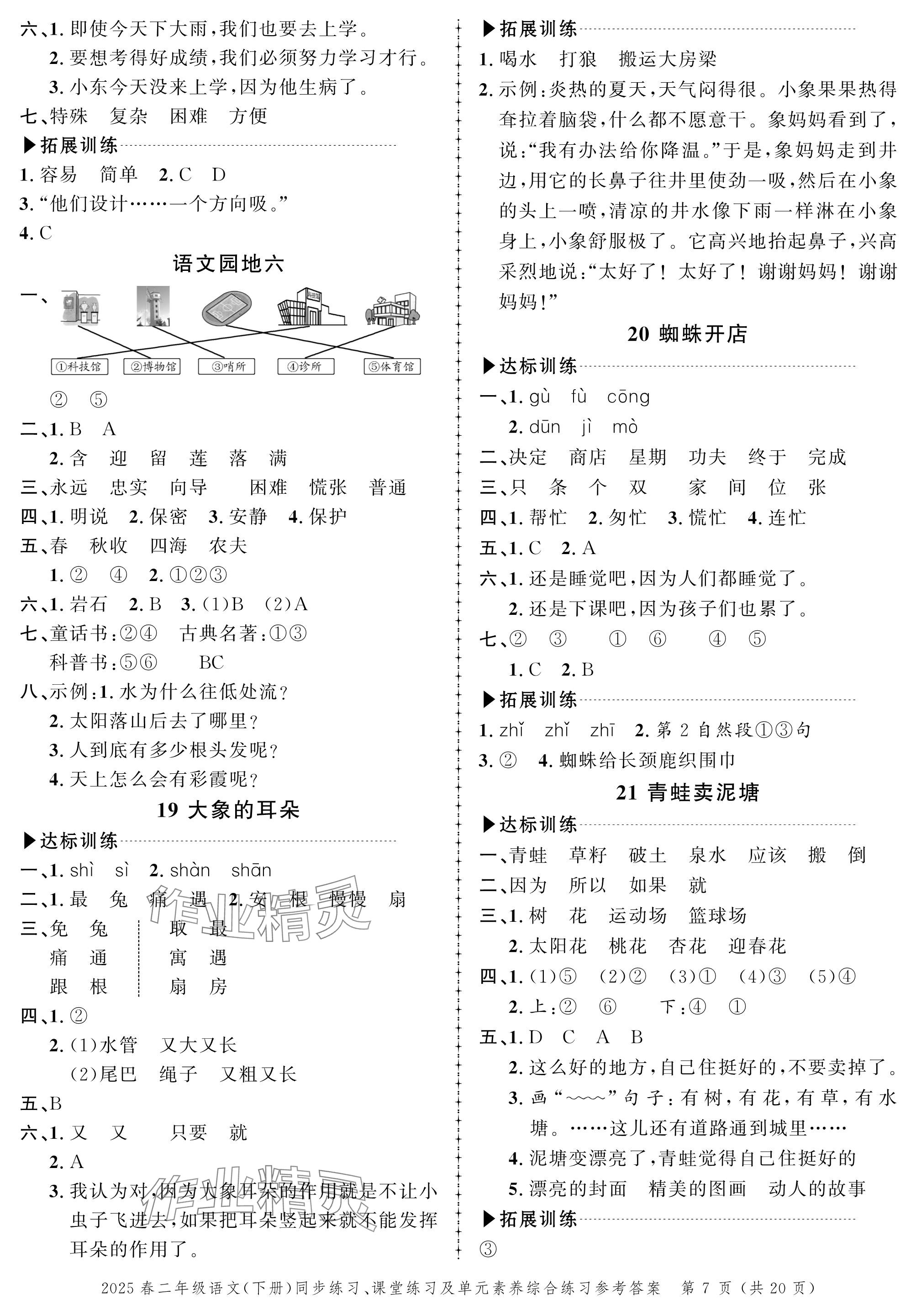 注:目前有些书本章节名称可能整理的还不是很完善,但都是按照顺序排列的,请同学们按照顺序仔细查找。练习册 2025年创新作业同步练习二年级语文下册人教版 答案主要是用来给同学们做完题方便对答案用的,请勿直接抄袭。