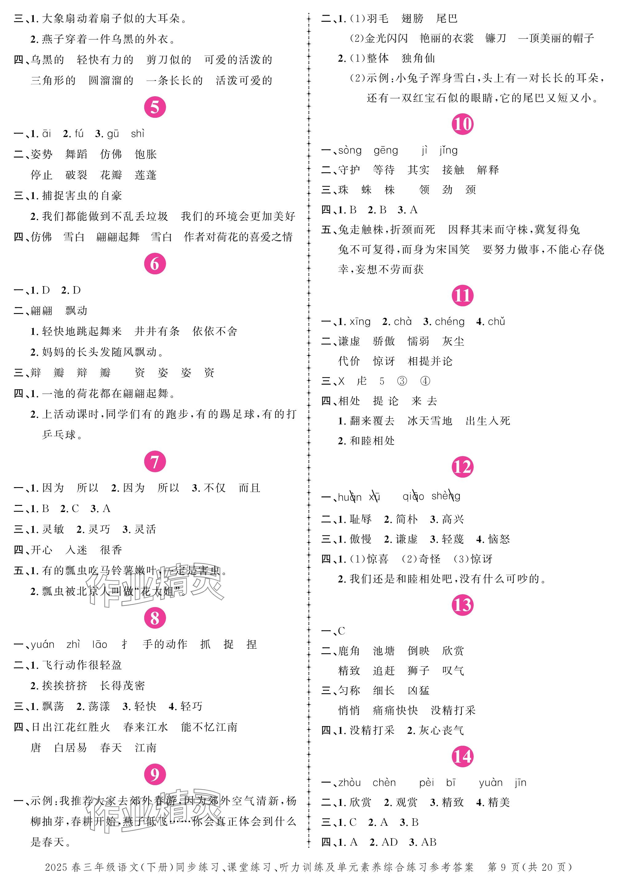 注:目前有些书本章节名称可能整理的还不是很完善,但都是按照顺序排列的,请同学们按照顺序仔细查找。练习册 2025年创新作业同步练习三年级语文下册人教版 答案主要是用来给同学们做完题方便对答案用的,请勿直接抄袭。