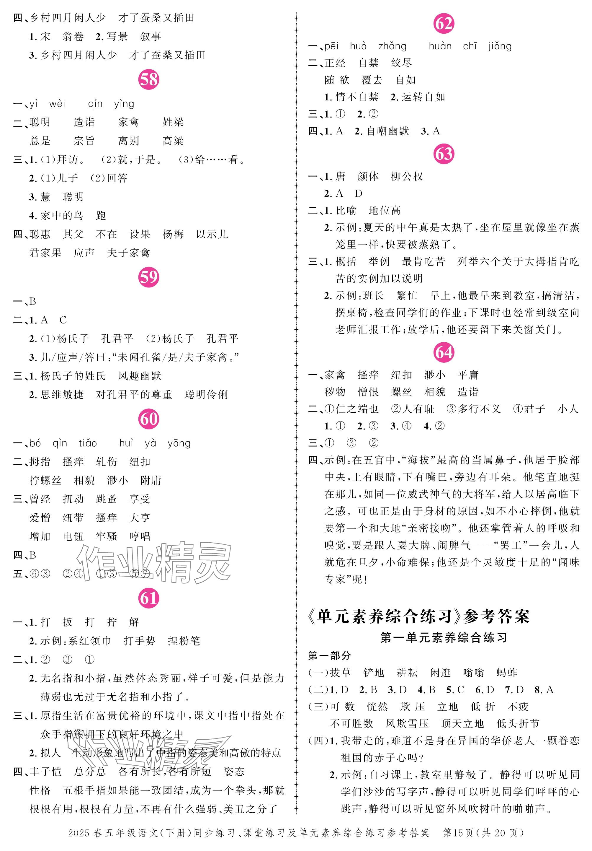 注:目前有些书本章节名称可能整理的还不是很完善,但都是按照顺序排列的,请同学们按照顺序仔细查找。练习册 2025年创新作业同步练习五年级语文下册人教版 答案主要是用来给同学们做完题方便对答案用的,请勿直接抄袭。