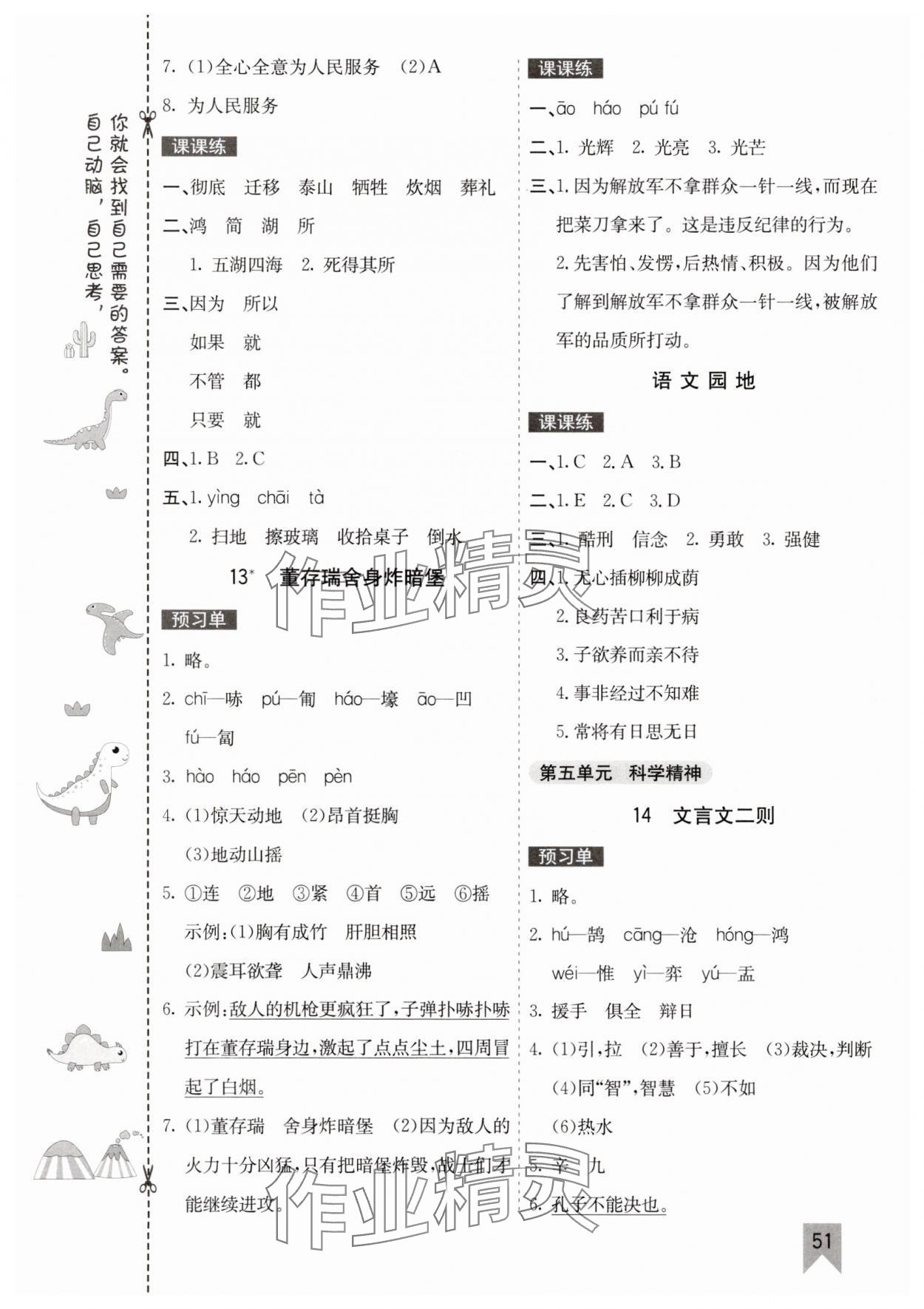 注:目前有些书本章节名称可能整理的还不是很完善,但都是按照顺序排列的,请同学们按照顺序仔细查找。练习册 2025年七彩课堂六年级语文下册人教版山西专版 答案主要是用来给同学们做完题方便对答案用的,请勿直接抄袭。